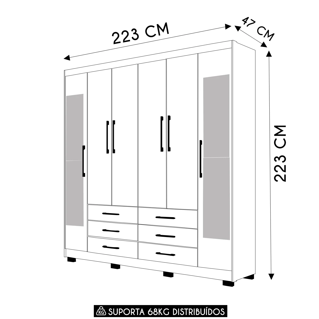 Com seis portas e puxadores diferenciados em acabamento dourado fosco, Guarda Roupa Com Espelho adiciona um toque de sofisticação e elegância ao ambiente. Seu design moderno e refinado transforma o espaço, oferecendo mais do que apenas funcionalidade, mas também estilo e requinte para o seu Quarto Casal.