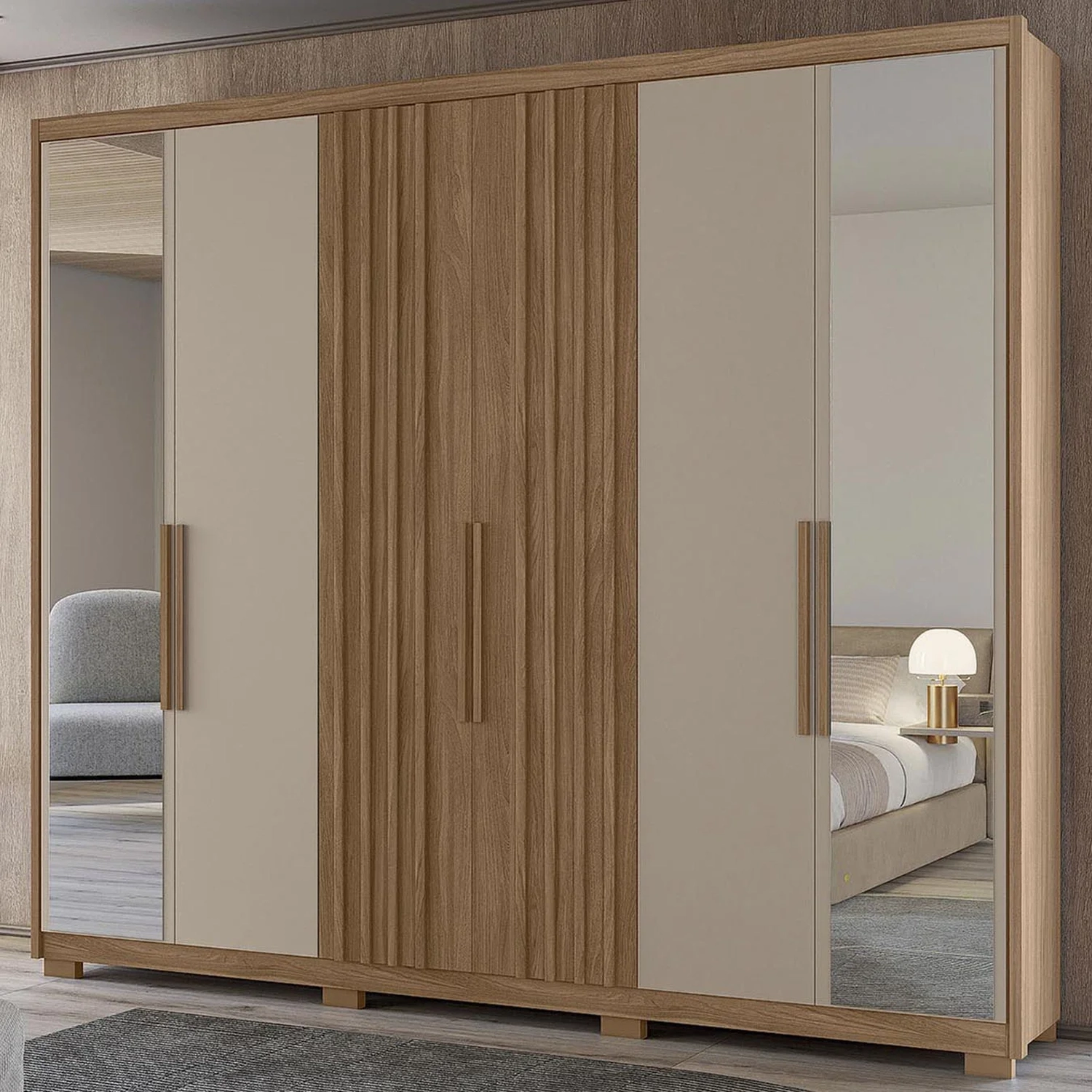 Guarda Roupa Casal 260cm Com Espelho Gaia Carvalho/Fendi Z17 - Mpozenato