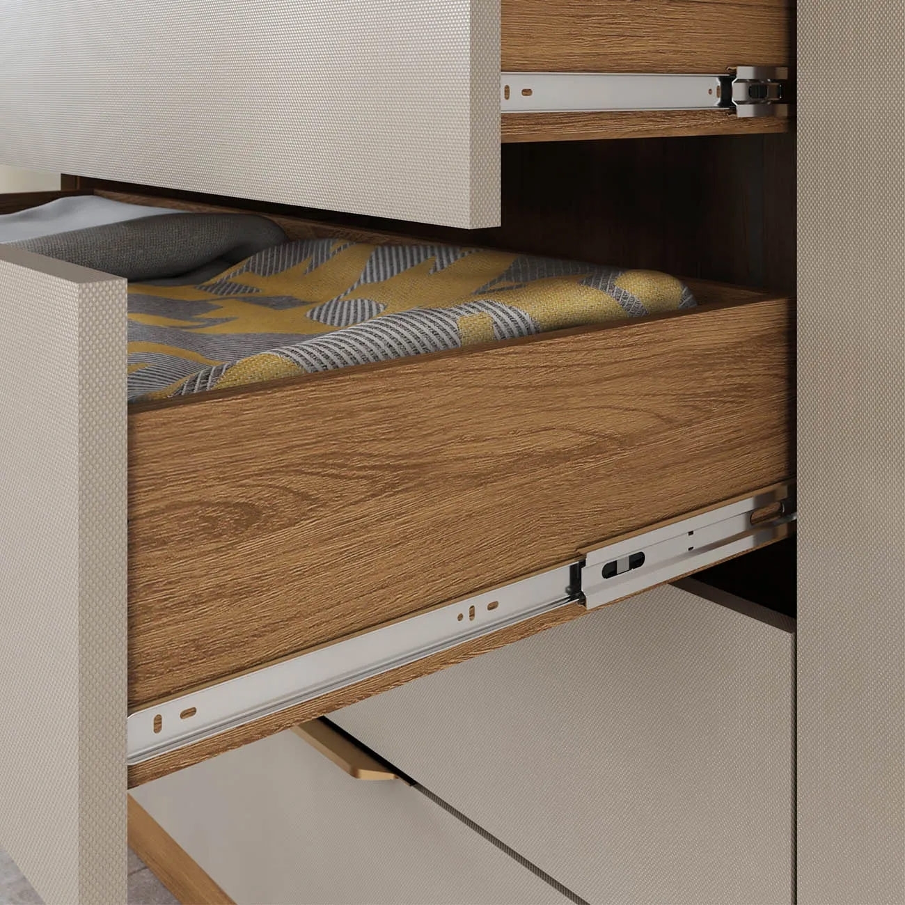 - Corrediças telescópicas que proporcionam deslizamento suave.