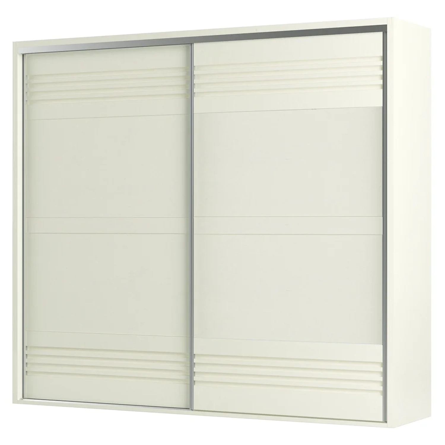 Características do Produto Material da Estrutura: MDF 15mm, 25mm e 40mm. Material do Fundo: MDF 6mm. Acabamento: Pintura UV. Peso Suportado: Prateleira: 10kg / Gaveta: 5 kg. Escala de Brilho: Off White: Brilho. Possui Portas: Sim. Quantidade de Portas: 2 Portas. Tipo das Portas: Deslizantes. Possui Puxadores: Sim. Possui Gavetas: Sim. Quantidade de Gavetas: 4 Gavetas. Tipo de Corrediças: Telescópicas. Possui Prateleiras: Sim. Quantidade de Prateleiras: 8 Prateleiras. Possui Cabideiros: Sim. Quantidade de Cabideiros: 3 Cabideiros. Material dos Cabideiros: Alumínio. Possui Pés: Sim. Tipo dos Pés: Rodapé MDF 25mm e Sapatas. Possui Espelho: Não. Diferenciais: