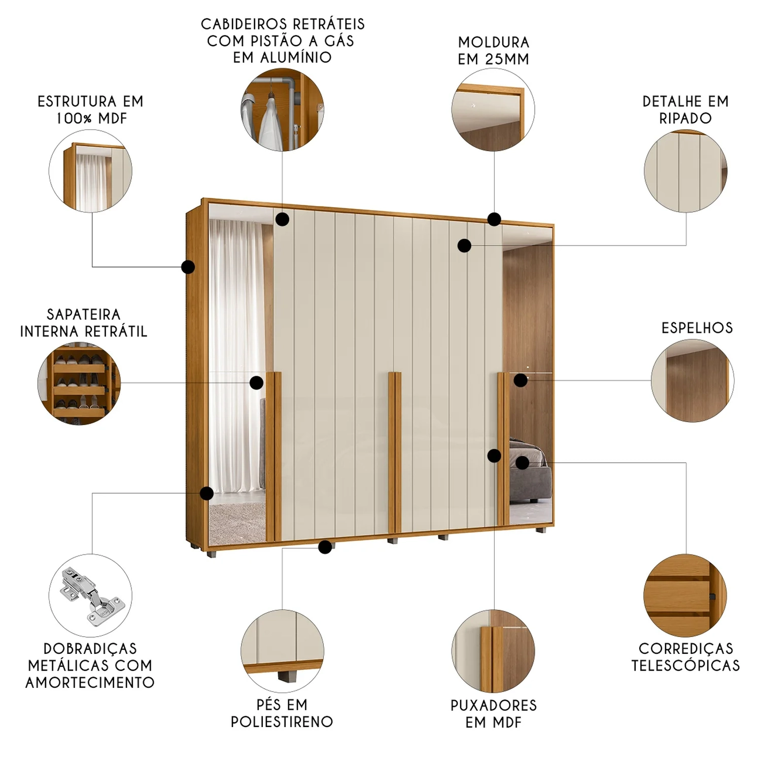 Guarda Roupa Casal 278cm 6 Portas 4 Espelhos Zac Off/Cinamomo Z10 - Mpozenato