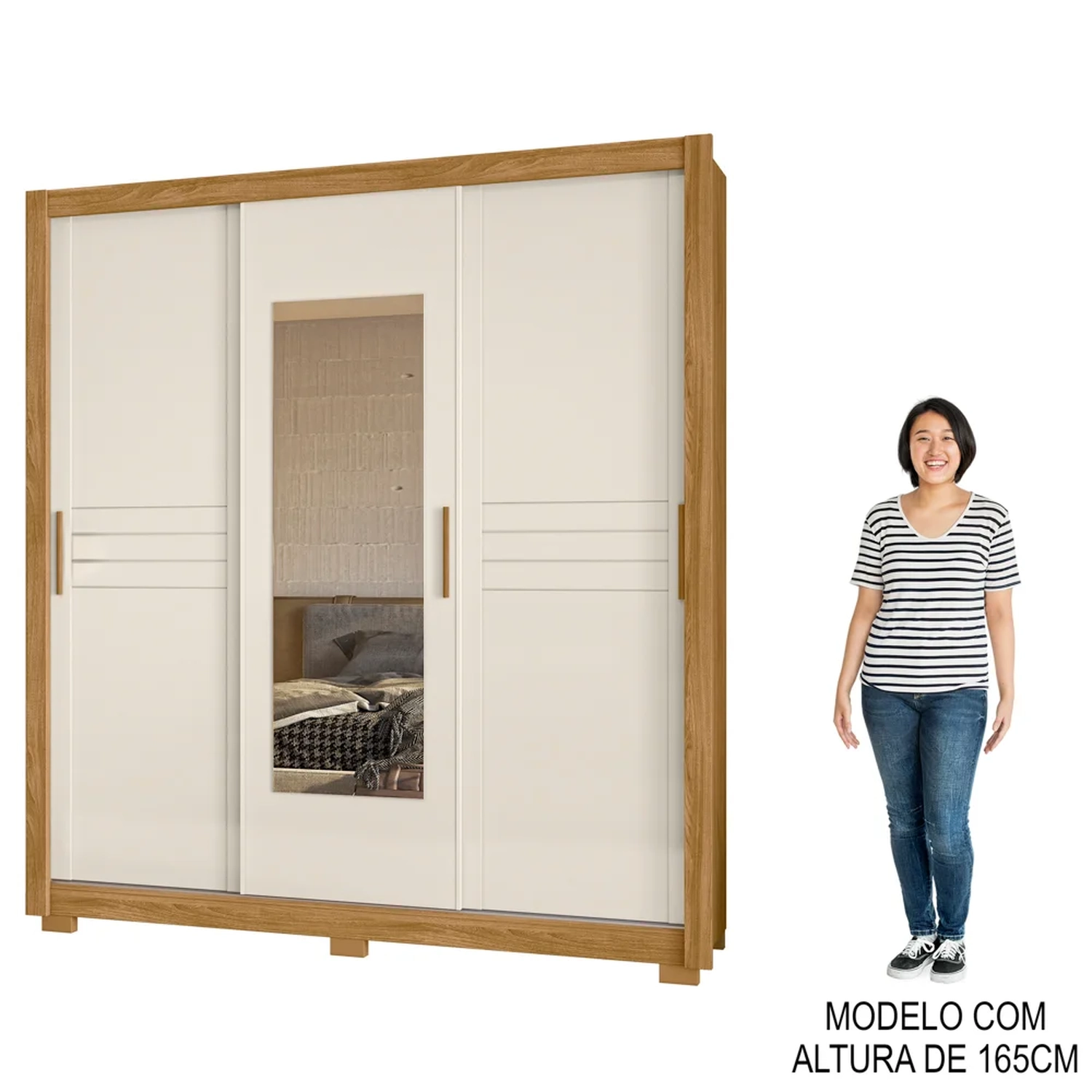 Renove o seu quarto de casal com o elegante Guarda Roupa Casal 3 Portas de Correr e Espelho 202cm Toronto Z17 Freijó/Off White, da Mpozenato. Com um design moderno e funcional, ele é perfeito para organizar suas roupas e acessórios, ao passo que confere um toque de sofisticação ao ambiente, com tonalidades sóbrias e detalhes que fazem a diferença, como o frisado nas portas e o espelho central, que além de ser prático na hora de conferir o look, ainda dá uma sensação de profundidade no ambiente.