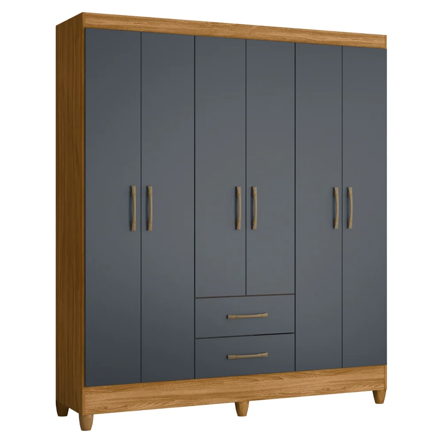 Desenvolvido na medida da sua necessidade, o Guarda Roupa Casal 6 Portas 2 Gavetas 153cm Paraná Z17 Freijó/Cinza, da Mpozenato, é a opção certa para você que quer um guarda roupa casal pequeno, mas sem abrir da funcionalidade.