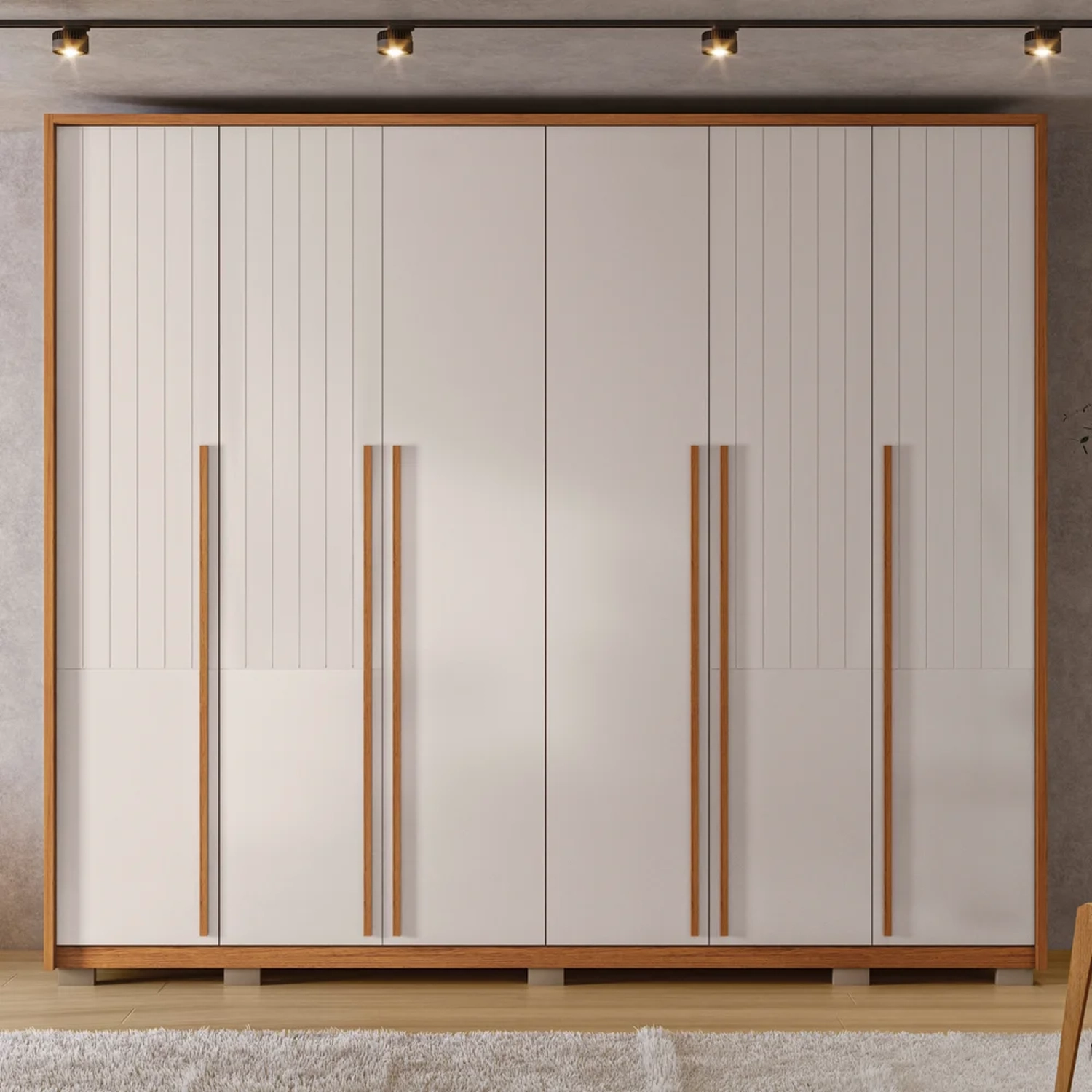 - 04 Portas com acabamento ripado largo em baixo relevo.