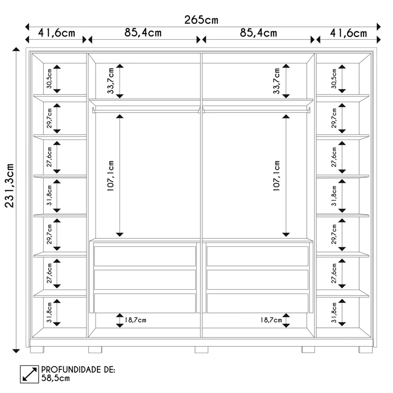 Profundidade: 58,5 cm.