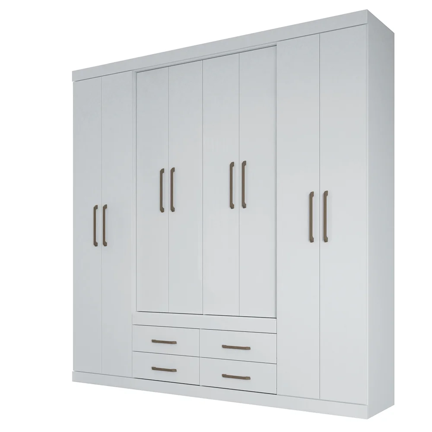 Bom, o Guarda Roupa Nápoles Branco possui 8 portas e 4 gavetas amplas, ou seja, conta com espaço suficiente para suas roupas, sapatos e acessórios podendo ser organizados da forma que você preferir! Mas não para por aí, esse guarda roupa casal ainda apresenta repartições internas que auxiliam muito no dia a dia, contendo 3 cabideiros e prateleiras que formam nichos. Ah, e vale ressaltar que qualidade é o que esse móvel tem garantido, graças a estrutura em MDP/MDF com acabamento em verniz, puxadores em ABS e cabideiro em alumínio.