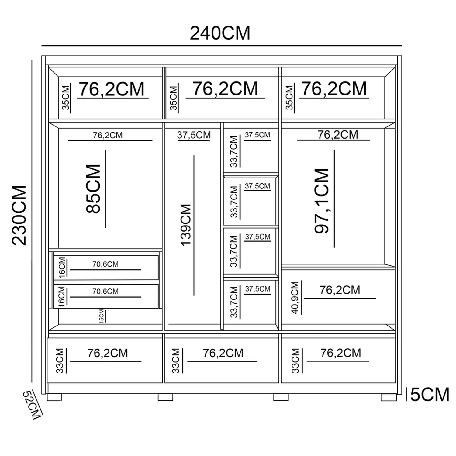 Largura: 240 cm.