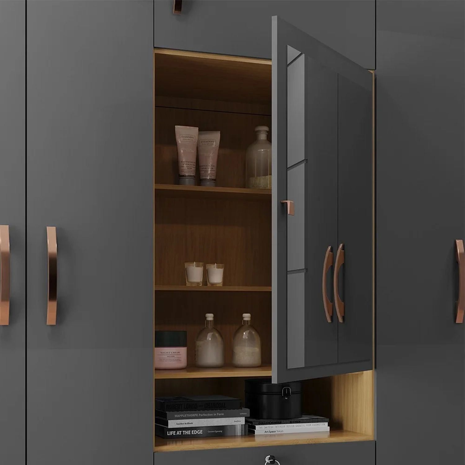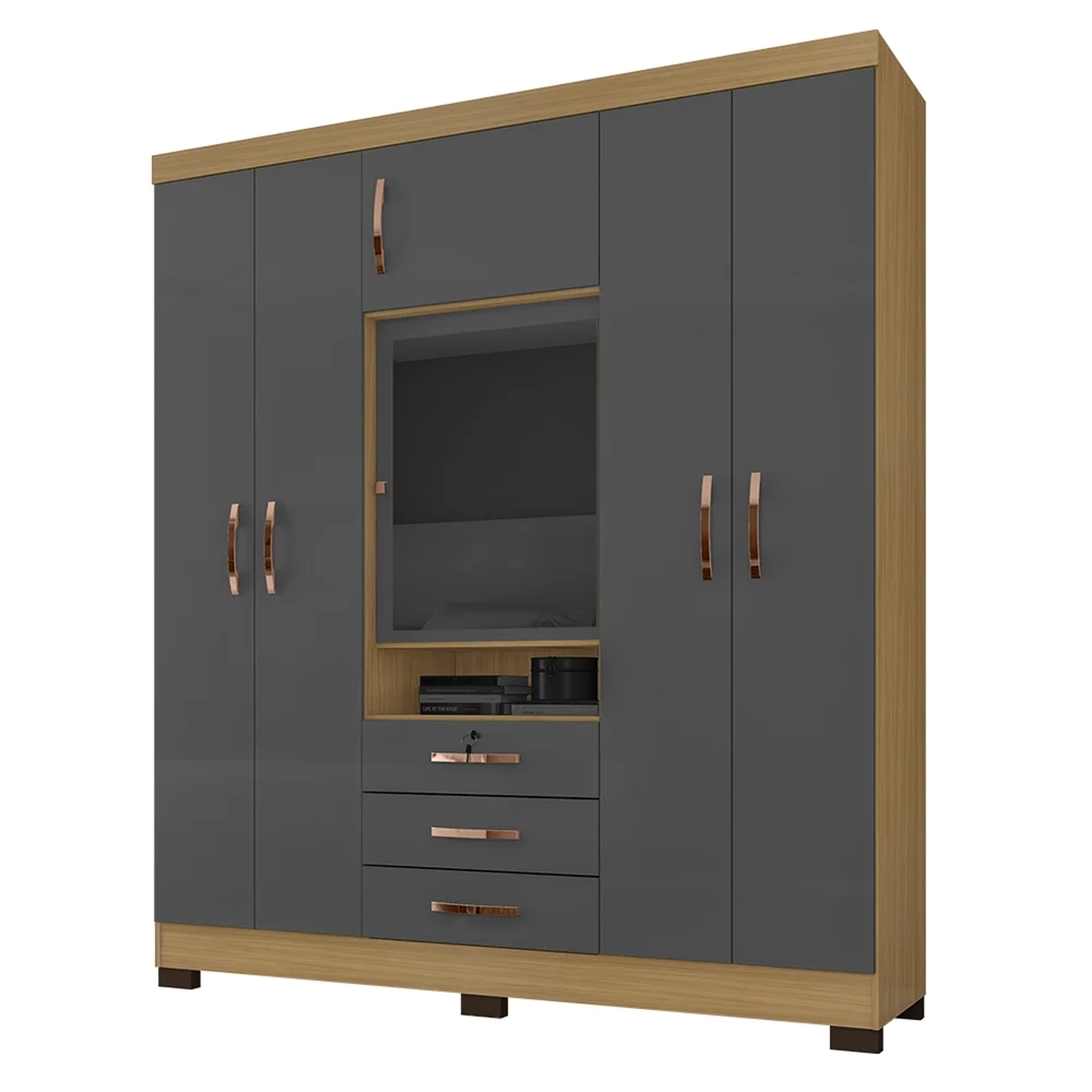 Com design compacto, mas sem abrir mão da funcionalidade, o Guarda Roupa Casal com Espelho 6 Portas Reino Unido Carvalho Americano/Grafite, da Incorplac, é ideal para você que tem um quarto de casal pequeno, mas que quer dar aquele toque de organização e estilo.