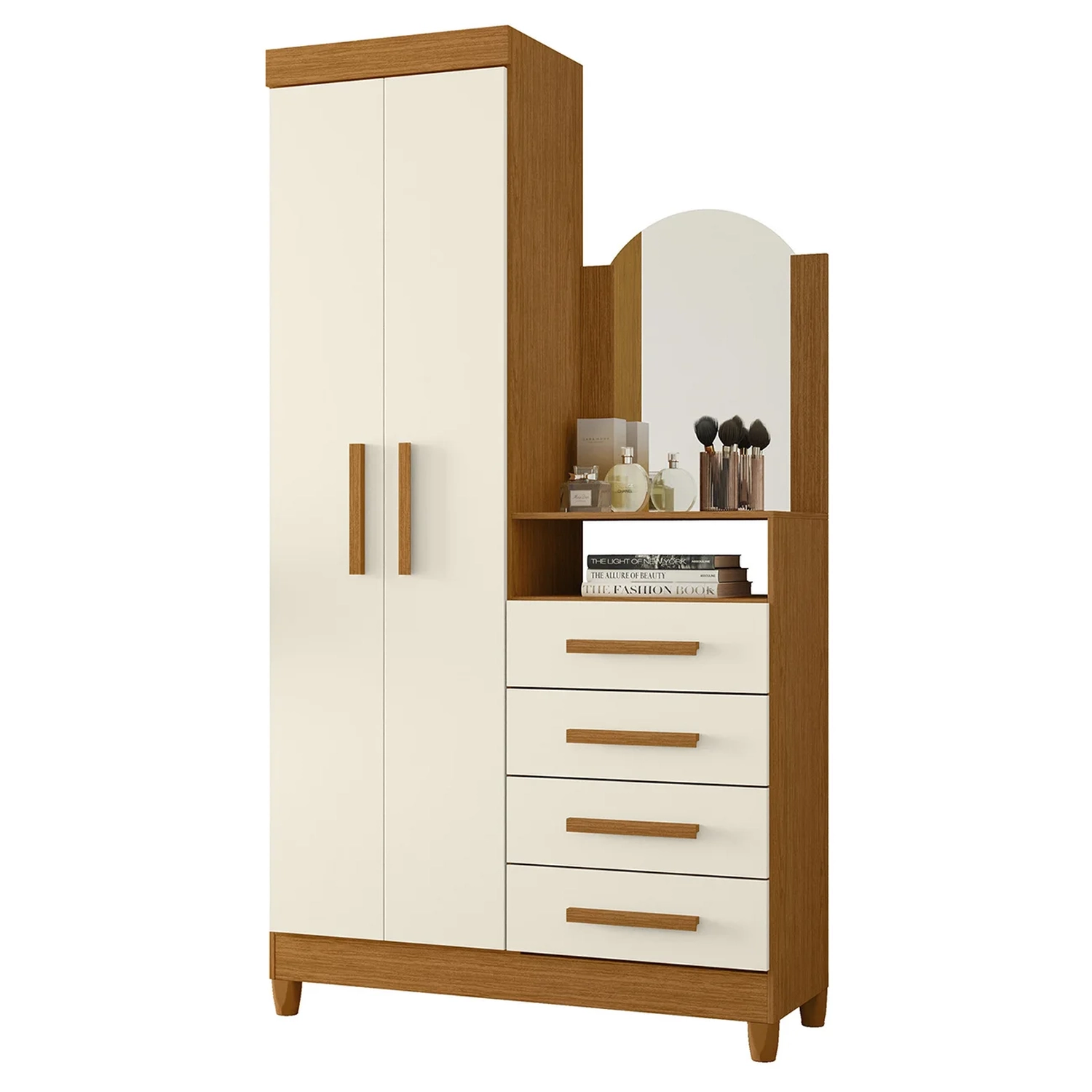 O Guarda Roupa Cômoda com Espelho 103cm Maite A02 Off/Cinamomo, da Mpozenato é a opção perfeita para quem busca organização e praticidade em um único móvel.