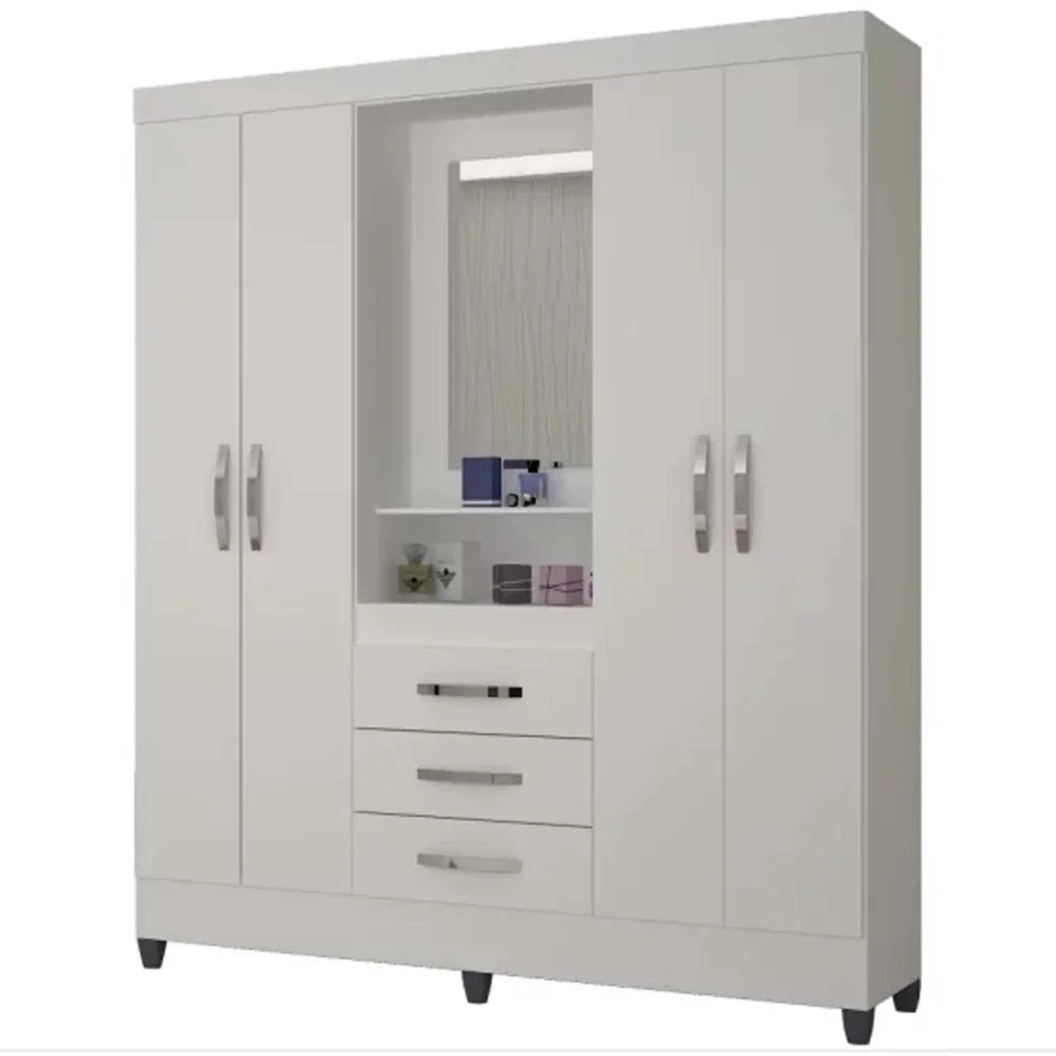 Com o Guarda Roupa Casal Capri 4 Portas e 3 Gavetas da Moval você não precisará se preocupar com isso. Sabe por quê? Ele contém 5 nichos, 3 gavetas com corrediças metálicas e puxadores com acabamento cromado e 2 cabideiros de alumínio oferecem em sua divisão, transmitindo maior organização para suas roupas. Produzido em 100% MDP e acabamento em pintura UV tornam esse móvel sinônimo de resistência e durabilidade. Possui suas portas deslizantes com trilho em alumínio e PVC.Ah, e é um produto flex, ou seja, você pode escolher o lado na hora da montagem.Genial, não é?