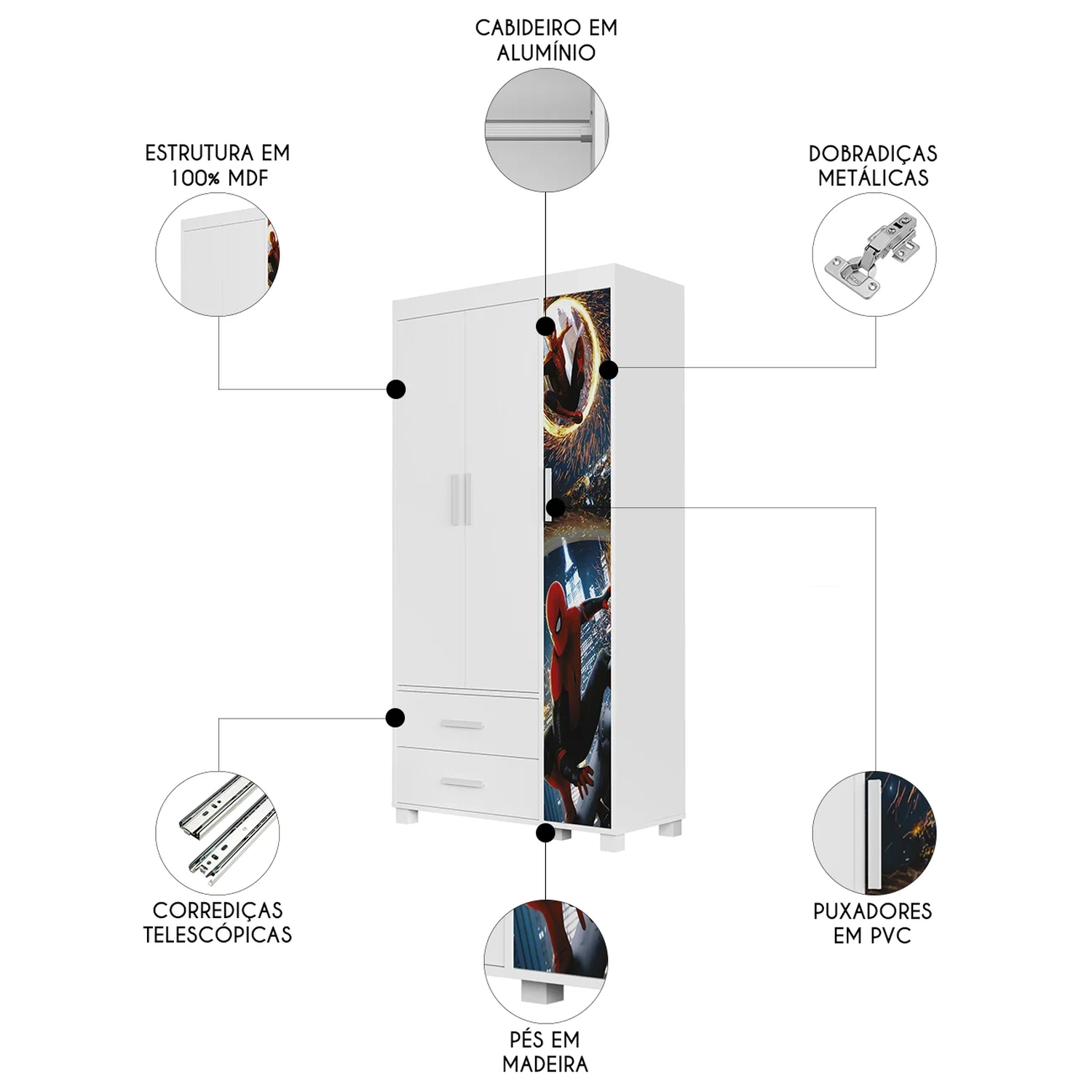 Guarda Roupa Infantil 89cm Com 3 Portas Herói Aranha Z53 - Mpozenato