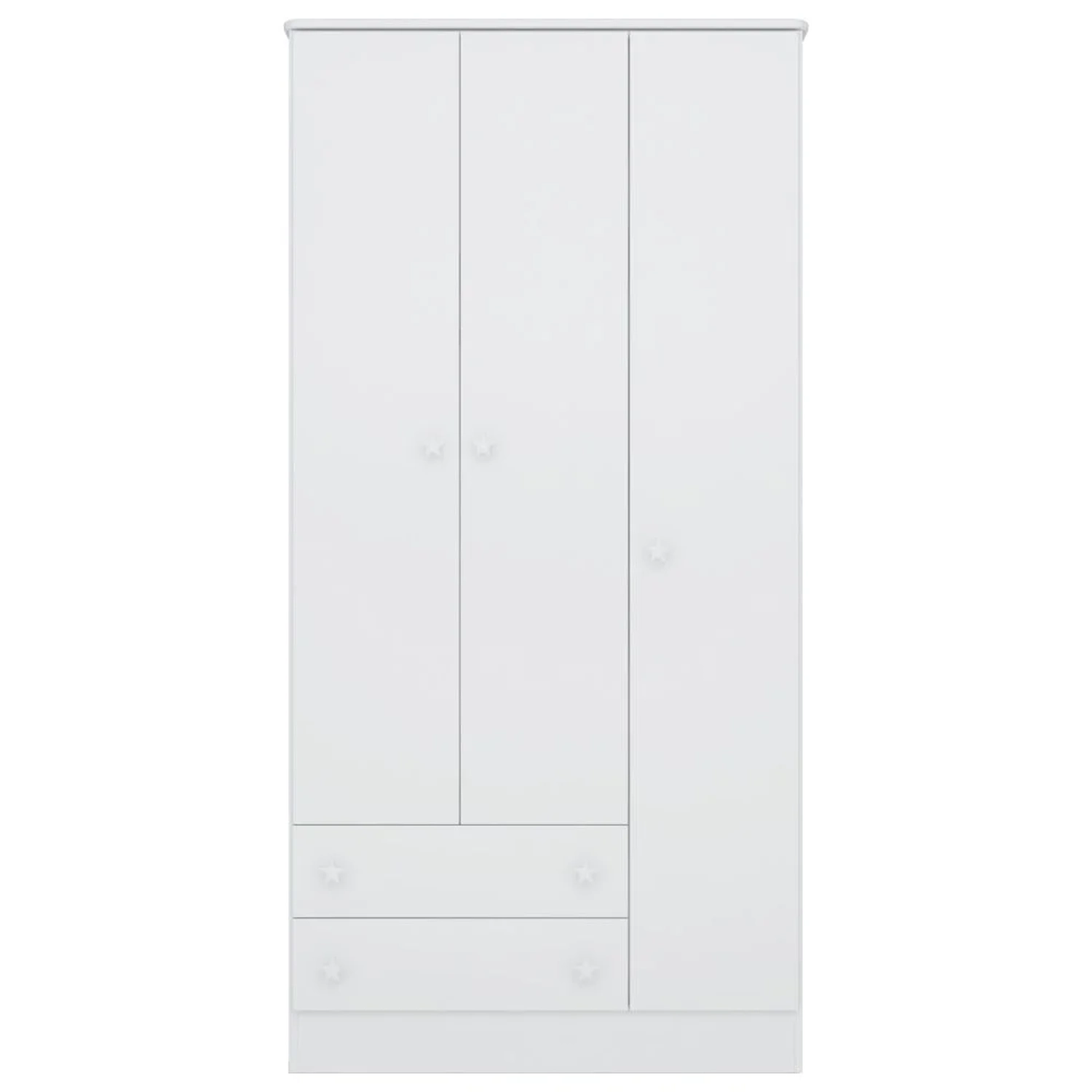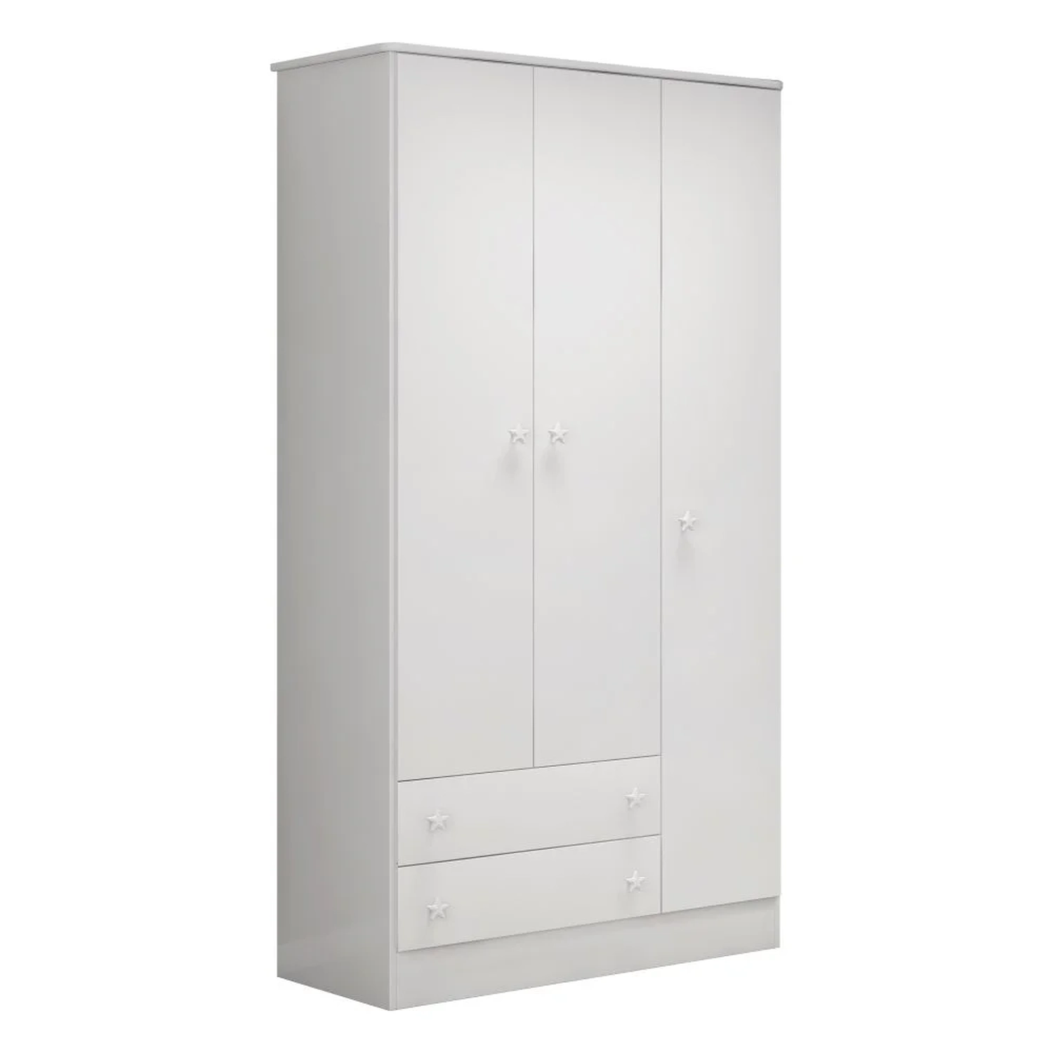 O Guarda Roupa Infantil Doce Sonho 3 Portas Branco é um Guarda Roupa com prateleiras com grande espaço entre elas, um cabideiro oblongo para roupas mais delicadas, gavetas de excelente profundidade e puxadores exclusivos em formato de estrela. Produzido 100% MDP com acabamento em UV para mais durabilidade, confira!