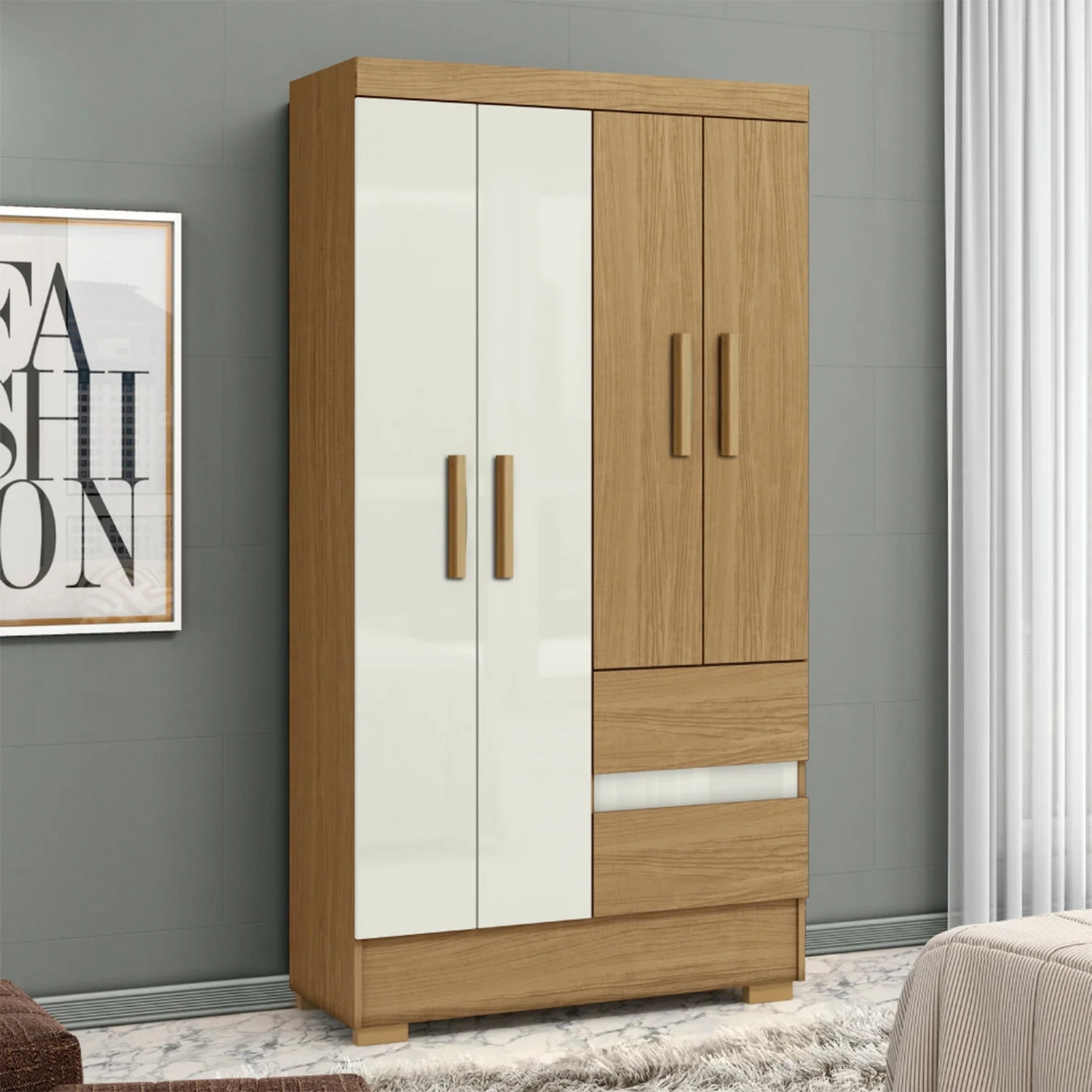 Guarda Roupa Solteiro 100cm 4 Portas Raely Atacama/Off A15 - Mpozenato