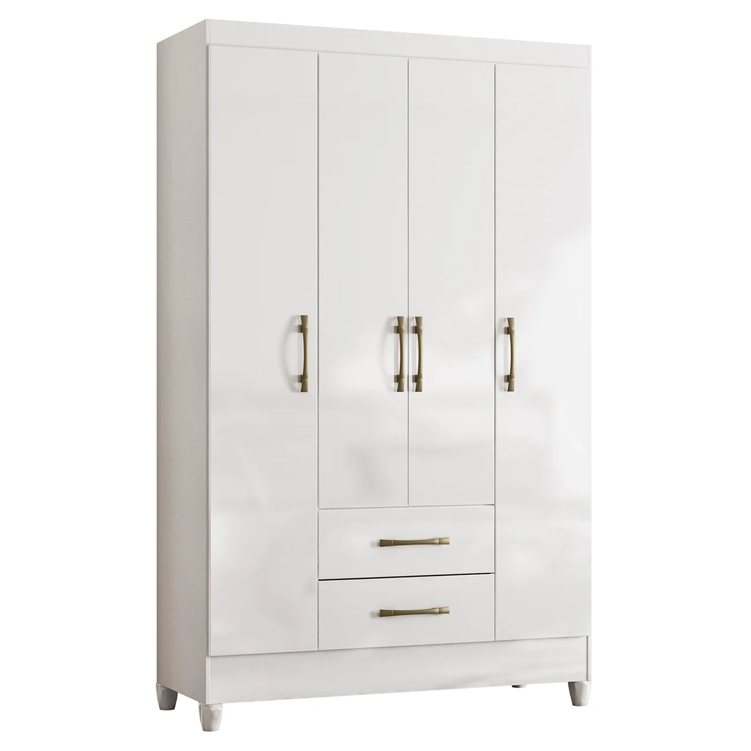 Unindo elegância e praticidade, o Guarda Roupa Solteiro 111cm 4 Portas Évora Z17 Branco, da Mpozenato, é a escolha indispensável para o seu quarto!
