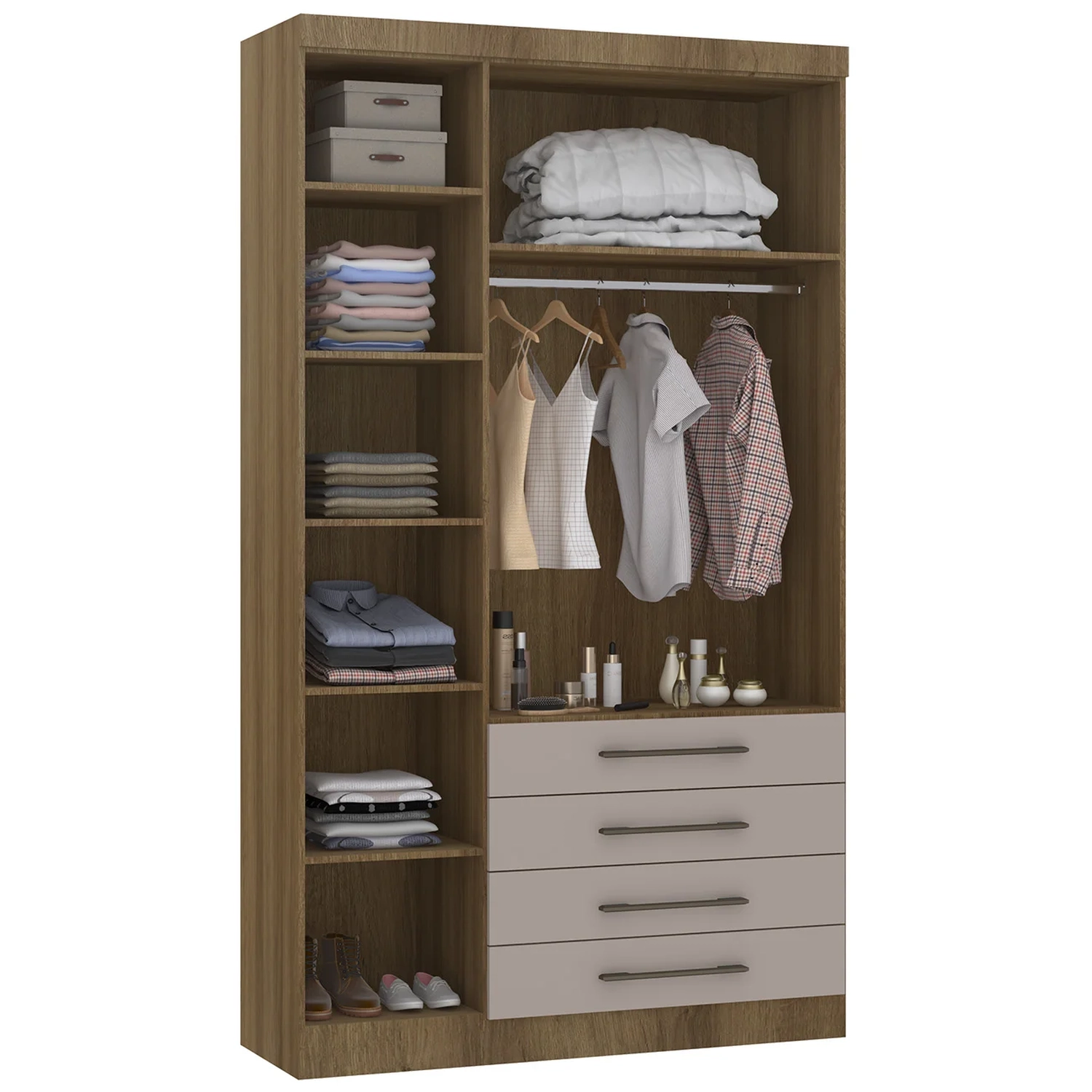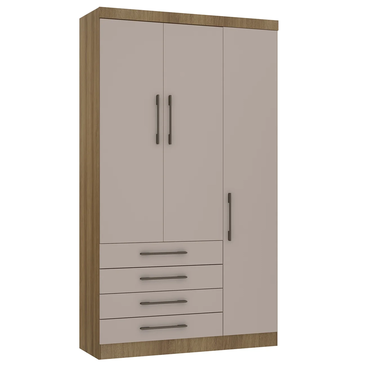 Guarda Roupa Solteiro 132cm 3 Portas 4 Gavetas Delphi Avelã/Cinnamon L01 - Mpozenato