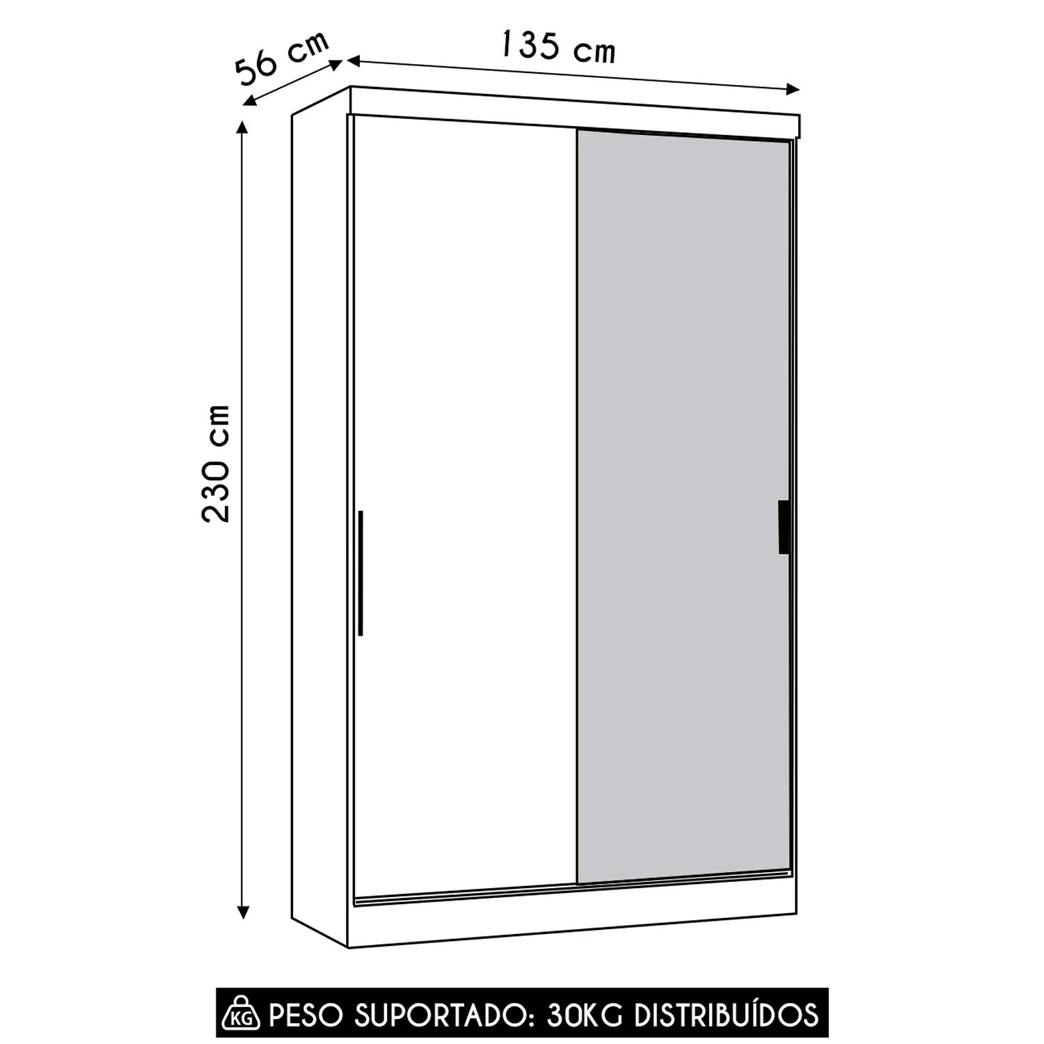 Conta com duas portas deslizantes, sendo uma delas com espelho perfeito para dar mais amplitude ao Quarto de Solteiro e ainda facilitar sua rotina, seus puxadores em polímero acompanham o estilo leve do móvel.