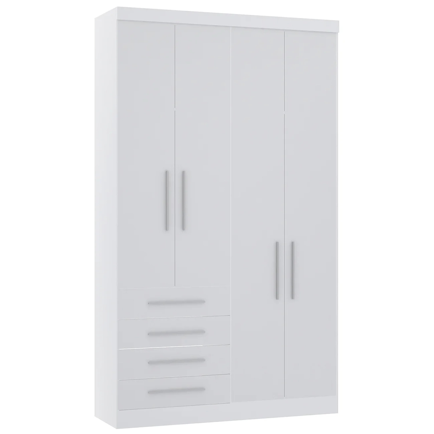 Guarda Roupa Solteiro 135cm 4 Portas 4 Gavetas Taiga Branco L01 - Mpozenato