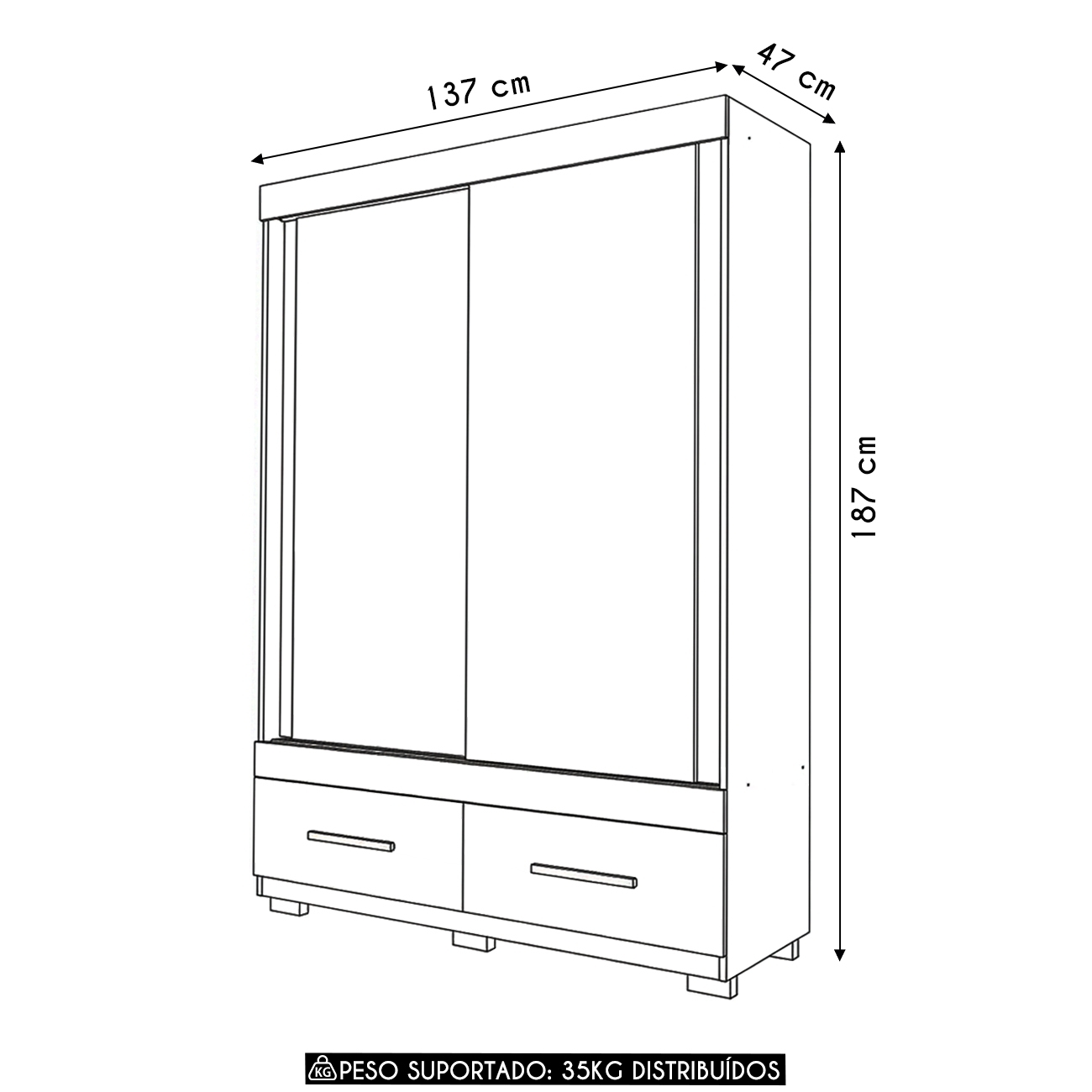 Peso Suportado: 35 Kg distribuídos.