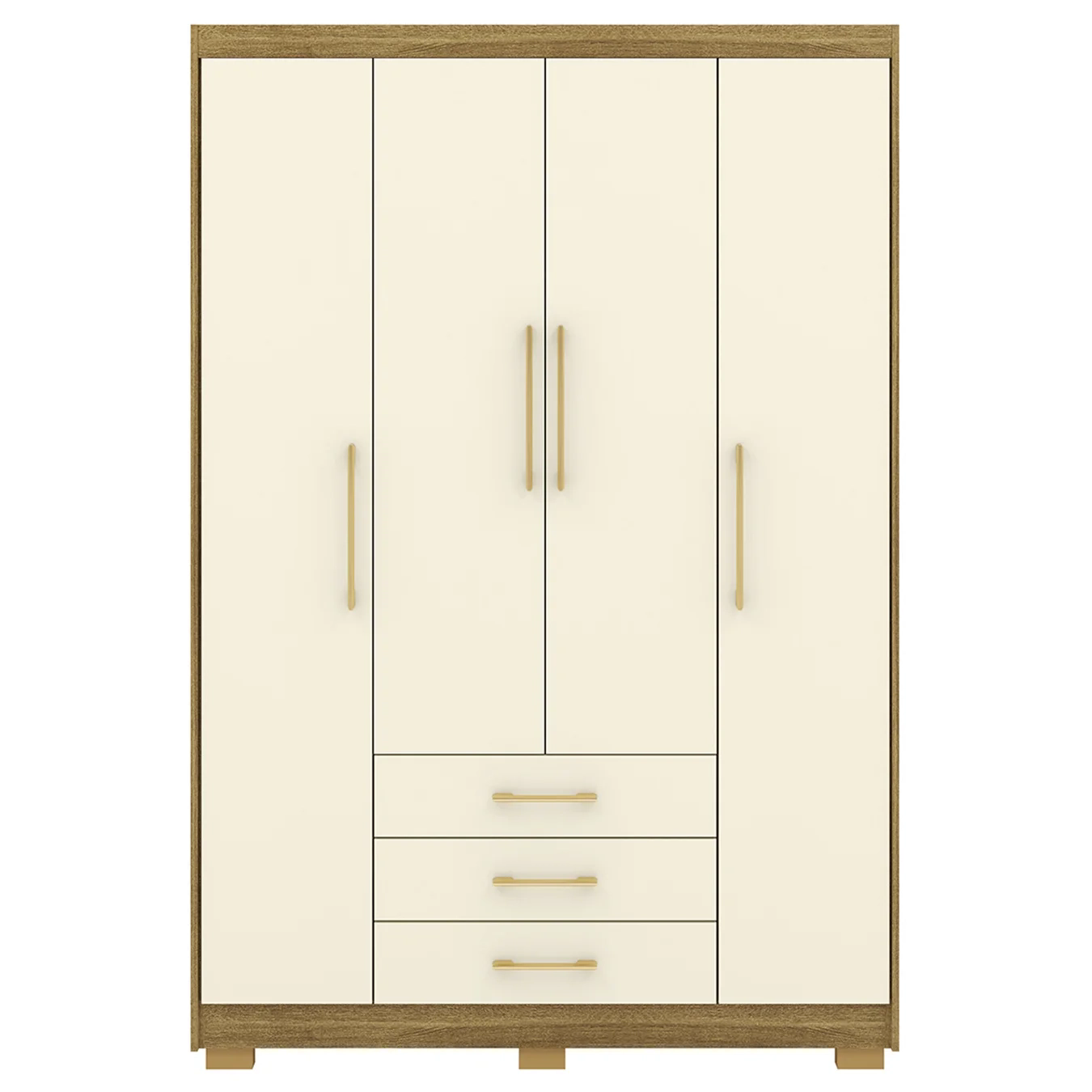 Guarda Roupa Solteiro 150cm 4 Portas Otto Nature/Champanhe V02 - Mpozenato