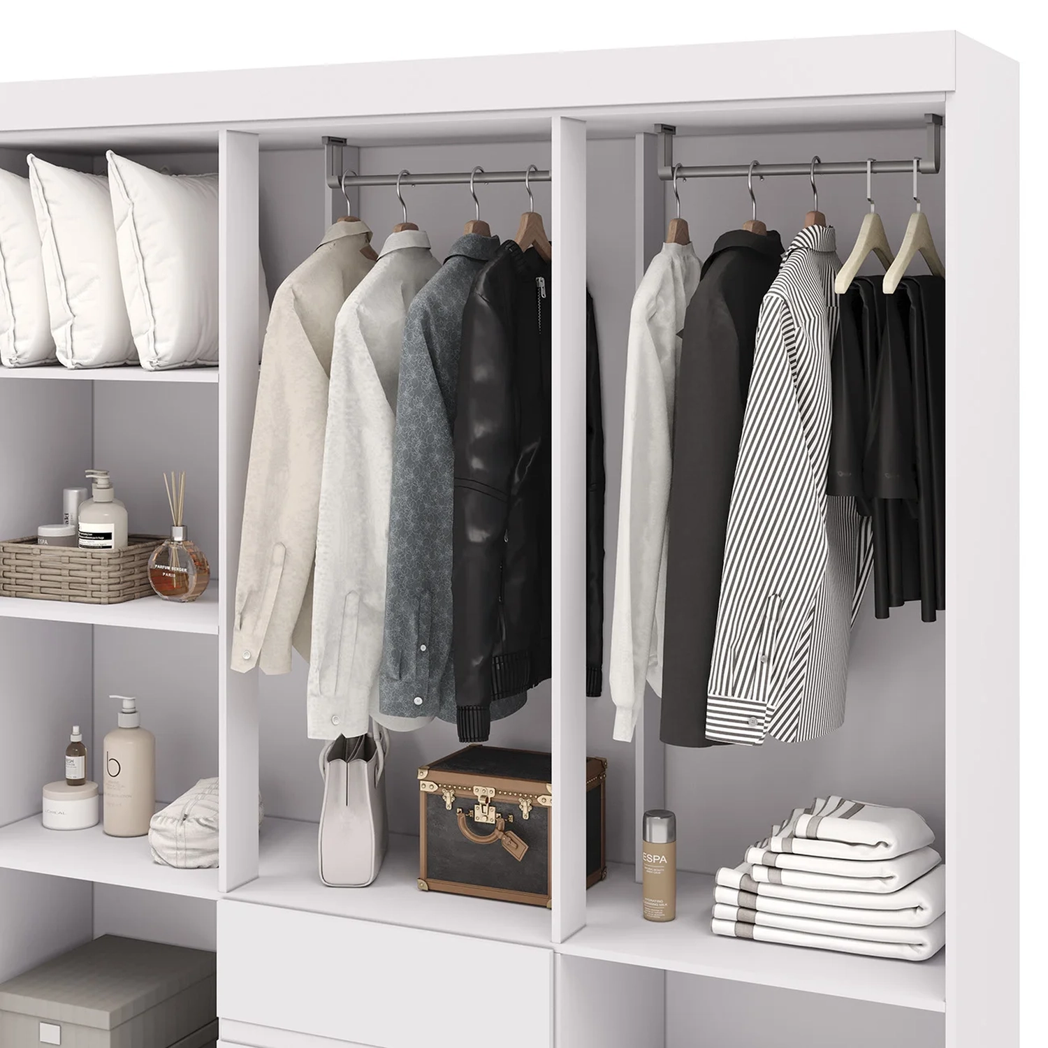 Este Guarda Roupa foi projetado para oferecer praticidade no dia a dia. As gavetas são equipadas com corrediças metálicas, garantindo durabilidade e facilidade de uso, enquanto os puxadores oferecem uma pegada confortável e ergonômica.