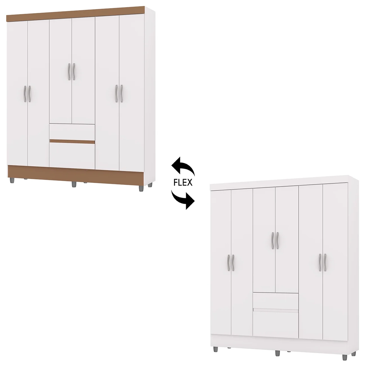 Os pés elevados do guarda roupa protegem o móvel da umidade, aumentando sua vida útil e garantindo uma melhor circulação de ar. Além disso, o design do guarda roupa com vistas flex é pensado para valorizar o ambiente e trazer uma sensação de aconchego e sofisticação ao seu quarto.