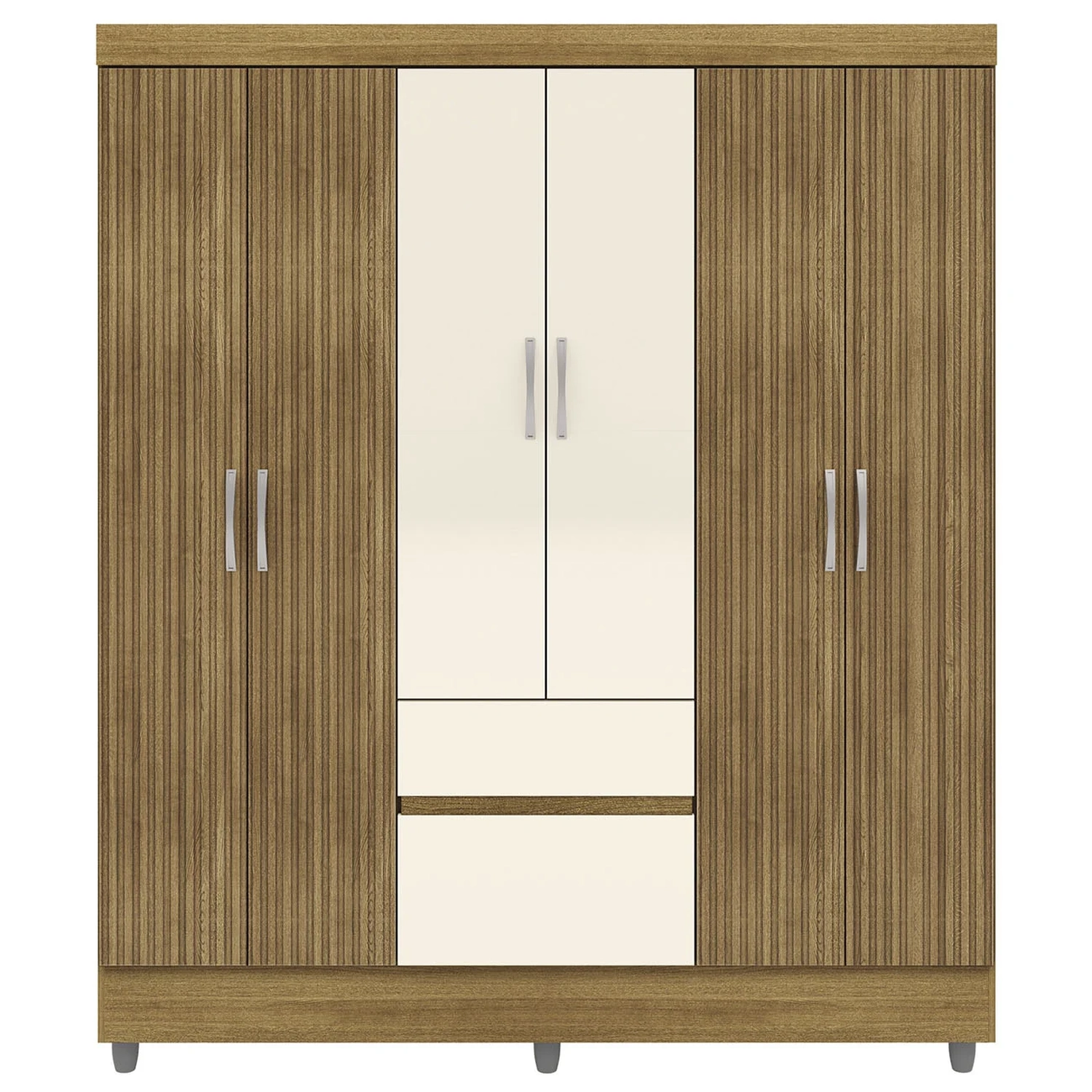 Guarda Roupa Solteiro 154cm Com 6 Portas Mayra Nature/Champanhe V02 - Mpozenato