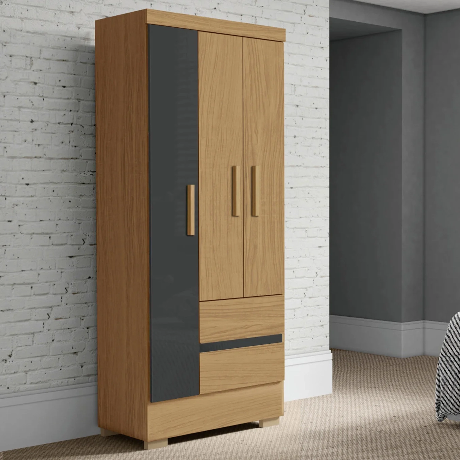 Guarda Roupa Solteiro 76cm 3 Portas Raely Atacama/Grafite A15 - Mpozenato