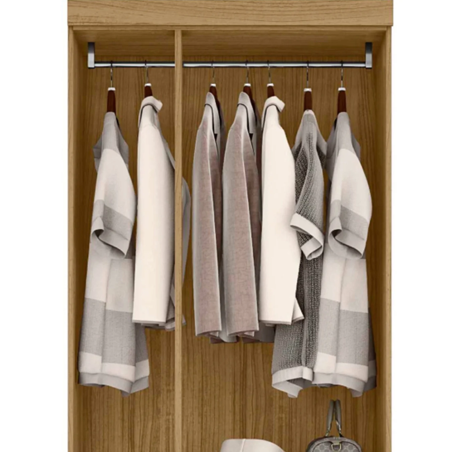 Com uma boa longevidade, este Guarda Roupa conta com dobradiças metálicas em suas portas, seus puxadores em MDF e pés em polipropileno deixam o móvel mais leve, resistente e prático para o uso.