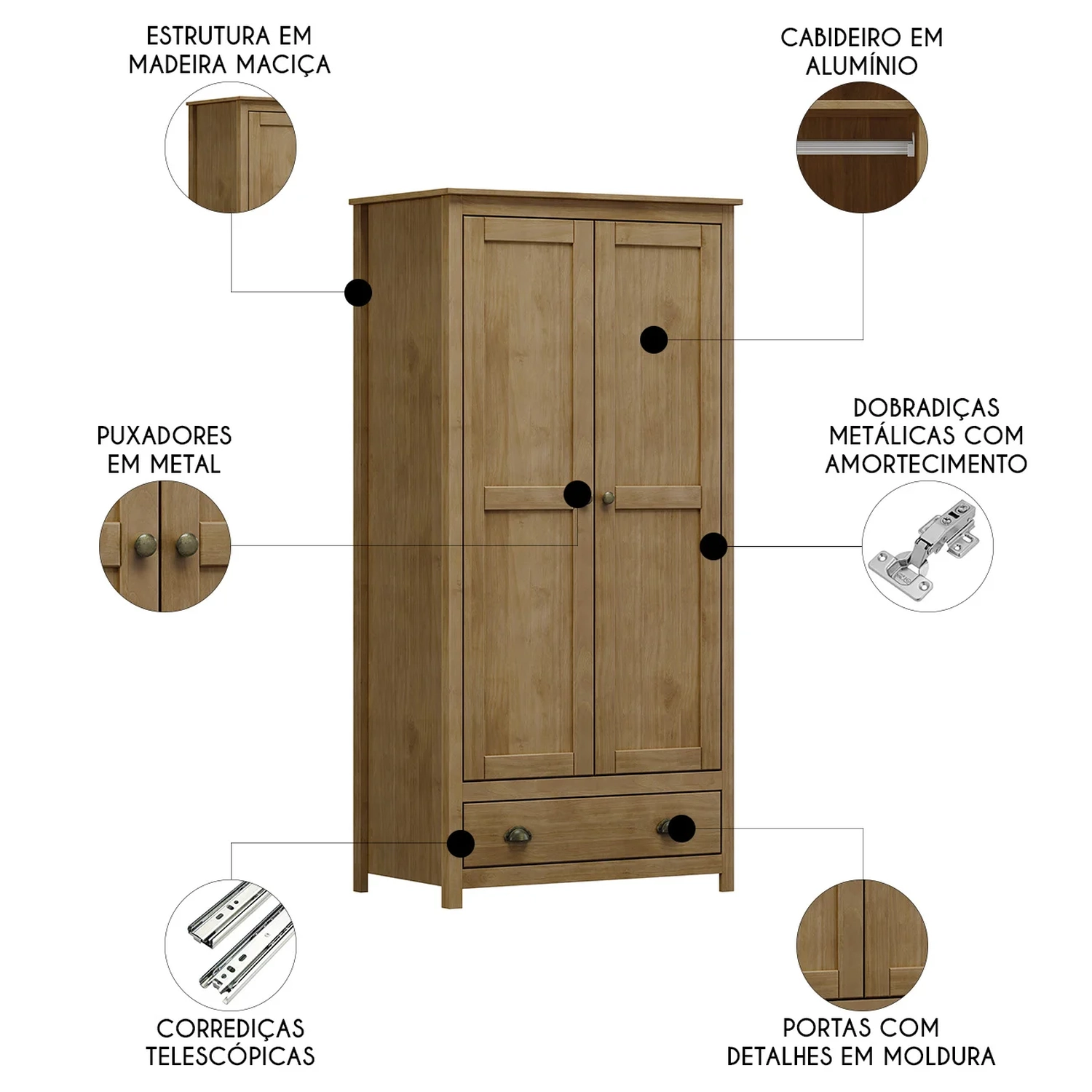 Guarda Roupa Solteiro 91cm 2 Portas 1 Gaveta Lázio Freijó F07