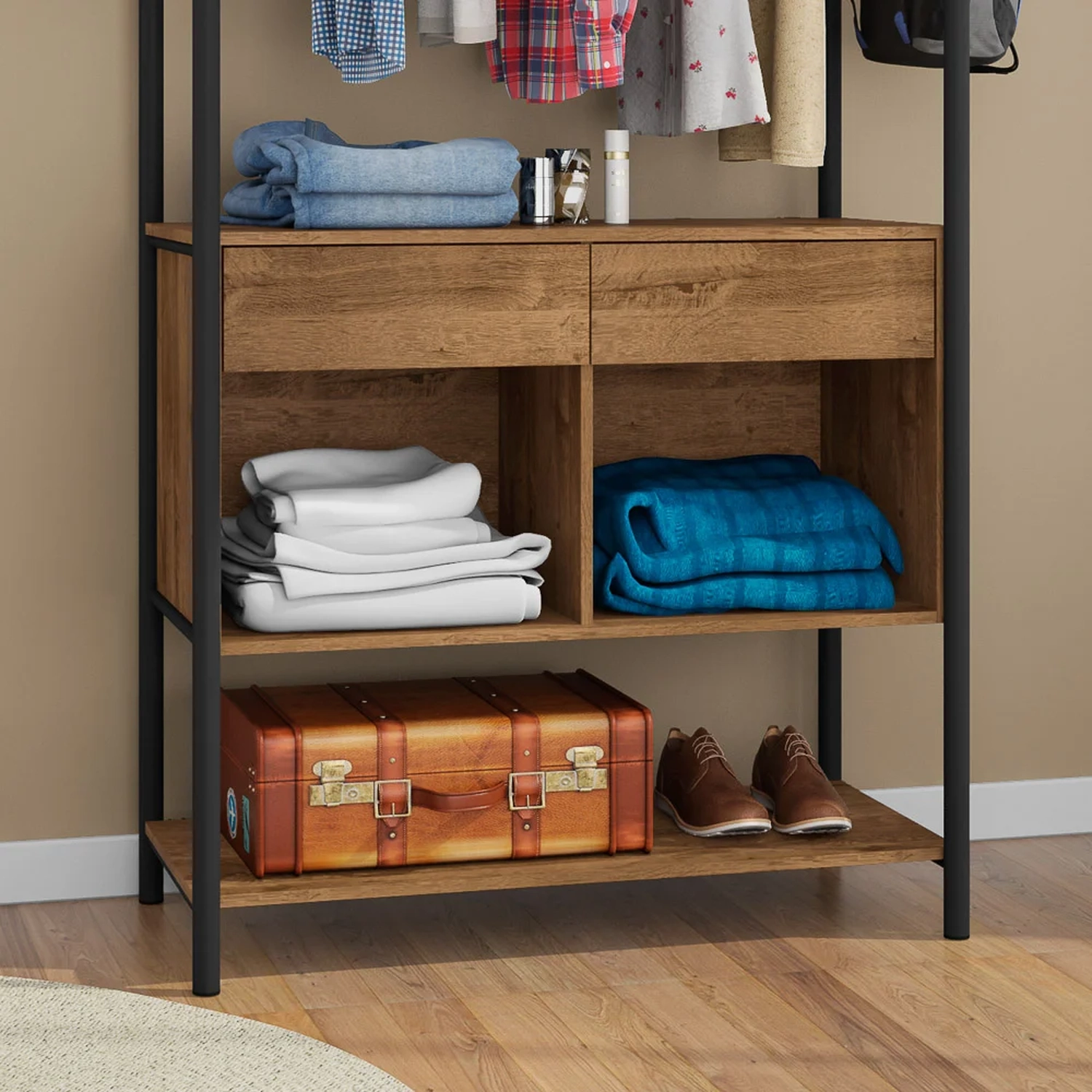 O Guarda Roupa Solteiro Closet Paris 2 Gavetas Preto/Demolição - Artefamol, é o móvel ideal para trazer charme e elegância para seu quarto. Possui design moderno que vai valorizar a decoração do ambiente. Produzido com tubos em aço carbono e MDP de ótima qualidade, que proporciona maior durabilidade e resistência ao produto. Conta com cabideiro, prateleiras, nichos e 2 gavetas. Um novo conceito de roupeiro, prático para organizar roupas e acessórios. Confira!