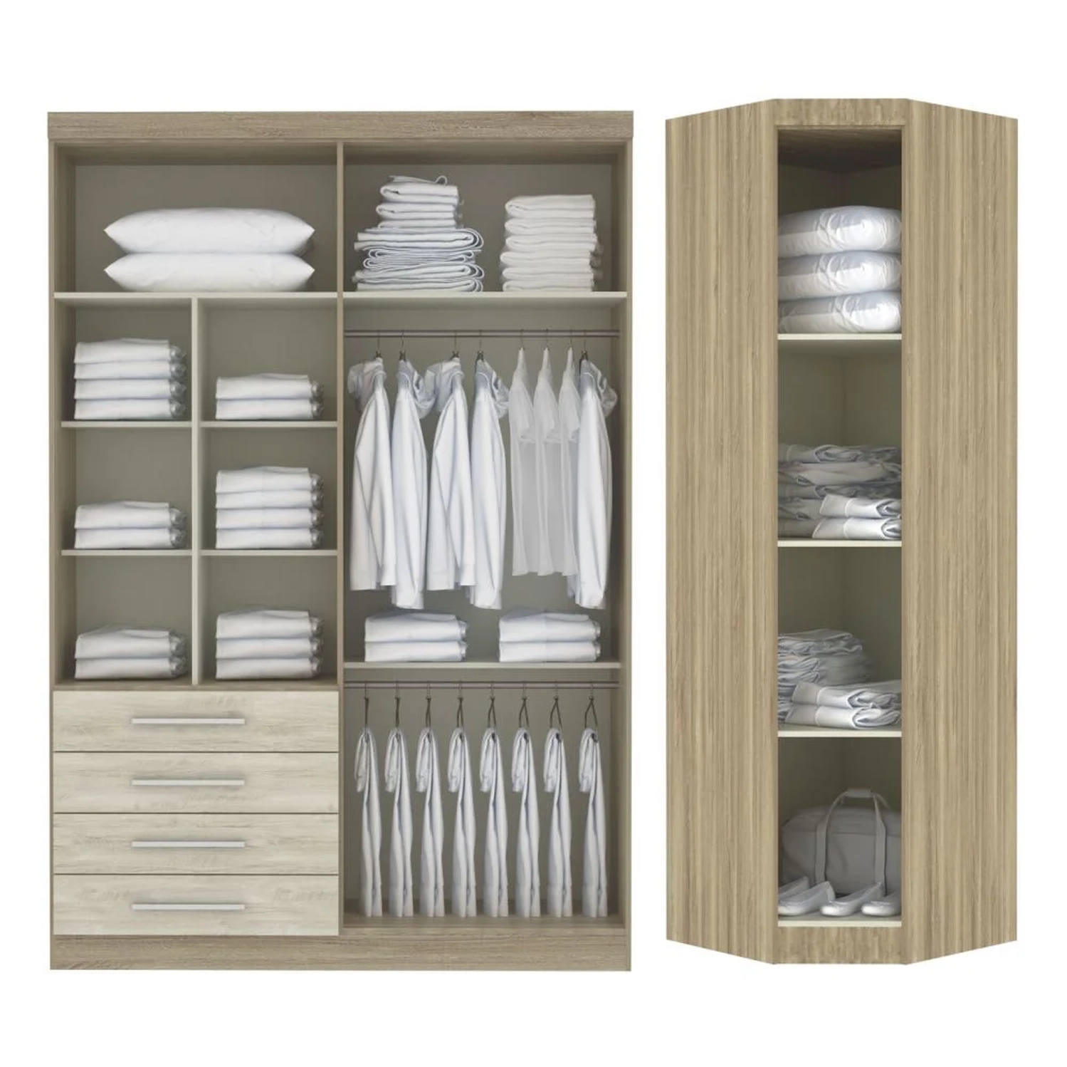 - Roupeiro Canto Diagonal com Espelho Master: 70 x 230 x 70 cm.