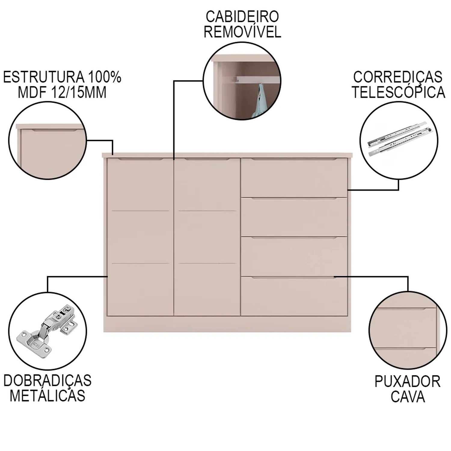 Conteúdo da Embalagem: 1 Guarda Roupa, 1 Cômoda.
