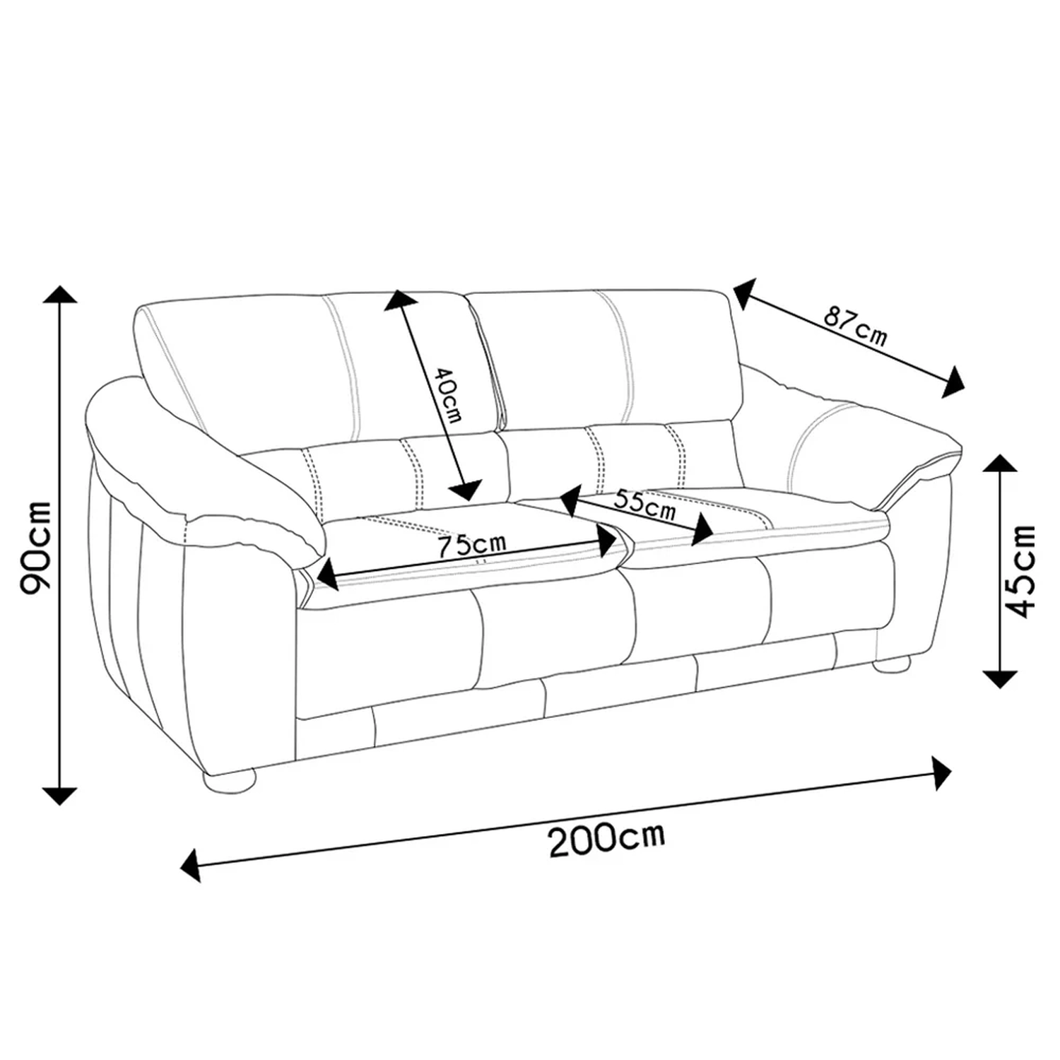 Profundidade do assento: 55 cm.