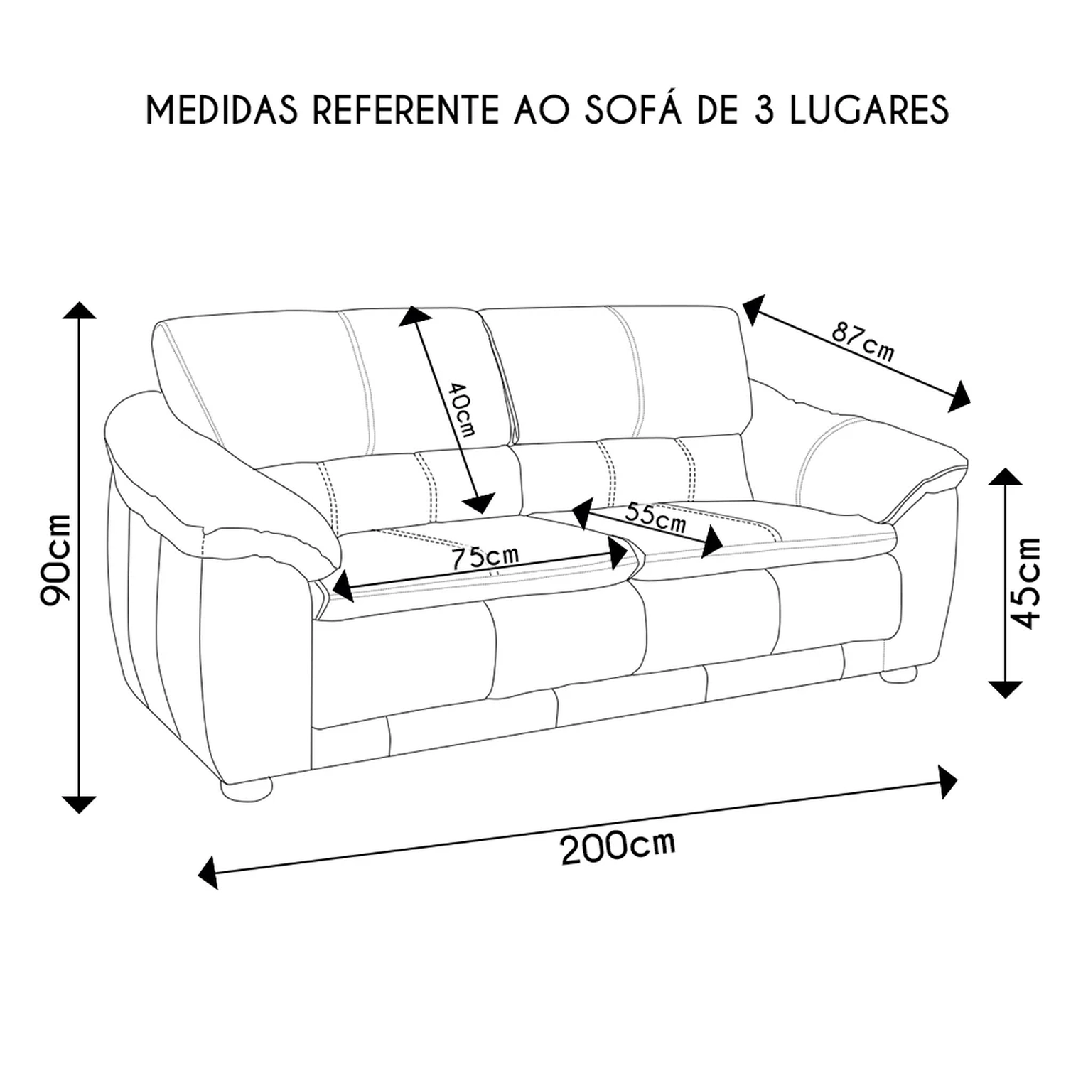 3 Lugares Sala de Estar: 200 x 90 x 87 cm