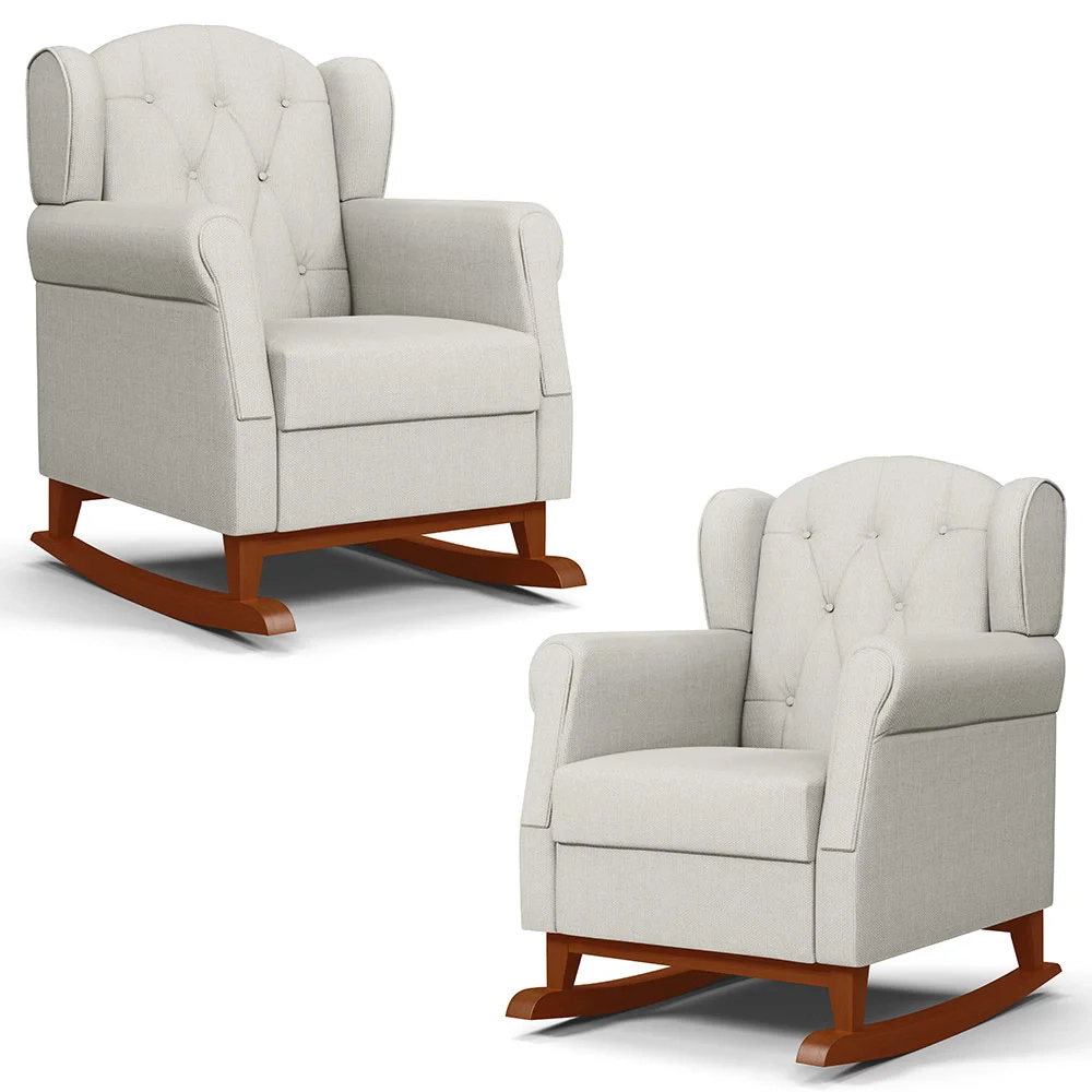 O Kit 02 Poltronas Amamentação Base Madeira Balanço Lucy Z39 Linho Off White - Mpozenato é a escolha ideal para as mamães que buscam conforto, beleza e qualidade. Ela possui uma estrutura de madeira de reflorestamento com imunização contra mofo, cupim e microrganismos, garantindo maior durabilidade e resistência. A sustentação do assento e encosto é feita com percintas elásticas que proporcionam mais maciez e ergonomia. A base canoa com balanço permite um movimento suave e relaxante, ideal para ninar o bebê ou descansar após um dia cansativo. A poltrona tem um design moderno e elegante que combina com qualquer ambiente. Ela está disponível em várias cores para você escolher a que mais combina com o seu estilo. Não perca essa oportunidade de ter uma Poltrona de Amamentação e Descanso na sua casa. Você vai se surpreender com o conforto e a qualidade dessa poltrona. Compre já!