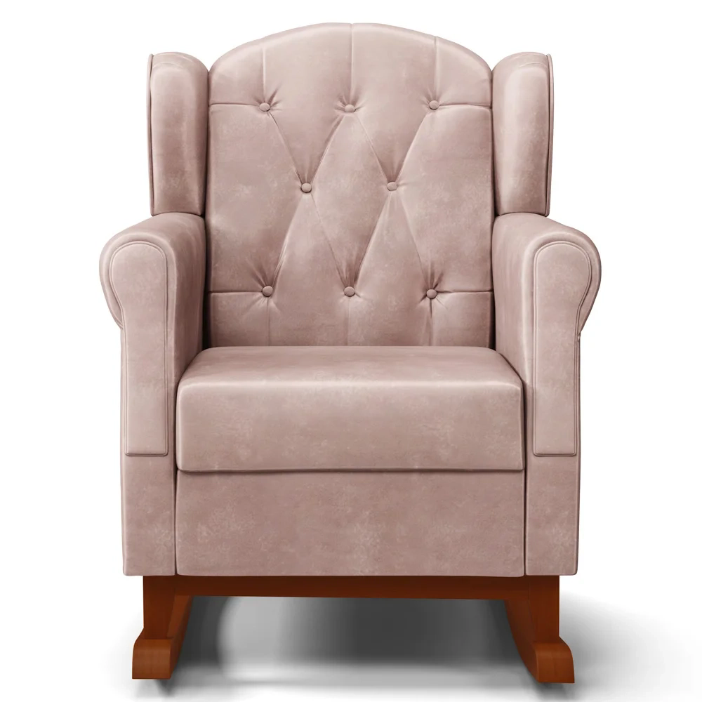 O Kit 02 Poltronas Amamentação Base Madeira Balanço Lucy Z39 Veludo Rosê - Mpozenato é a escolha ideal para as mamães que buscam conforto, beleza e qualidade. Ela possui uma estrutura de madeira de reflorestamento com imunização contra mofo, cupim e microrganismos, garantindo maior durabilidade e resistência. A sustentação do assento e encosto é feita com percintas elásticas que proporcionam mais maciez e ergonomia. A base canoa com balanço permite um movimento suave e relaxante, ideal para ninar o bebê ou descansar após um dia cansativo. A poltrona tem um design moderno e elegante que combina com qualquer ambiente. Ela está disponível em várias cores para você escolher a que mais combina com o seu estilo. Não perca essa oportunidade de ter uma Poltrona de Amamentação e Descanso na sua casa. Você vai se surpreender com o conforto e a qualidade dessa poltrona. Compre já!