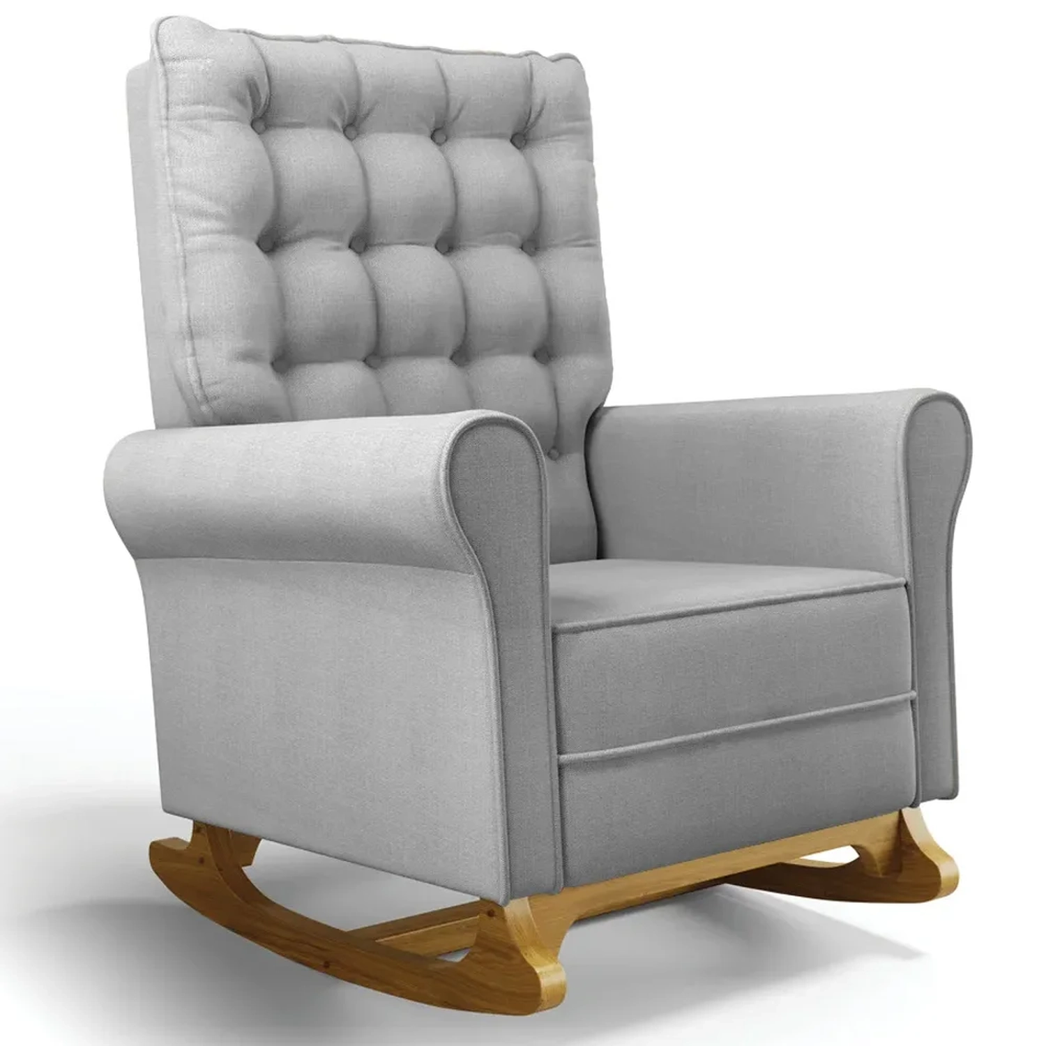 As Poltronas de Balanço são feitas com materiais de alta qualidade, estrutura em madeira de eucalipto, o tecido linho macio e resistente, e a espuma D23 a densidade ideal para o seu conforto, base em madeira com um lindo design e balanço suave, que ajuda a relaxar e a embalar o sono do seu bebê. Além disso, o Kit 2 Poltronas possui um design moderno e sofisticado, com detalhes em botonê revestido no encosto, que dão um toque de charme e elegância ao ambiente.