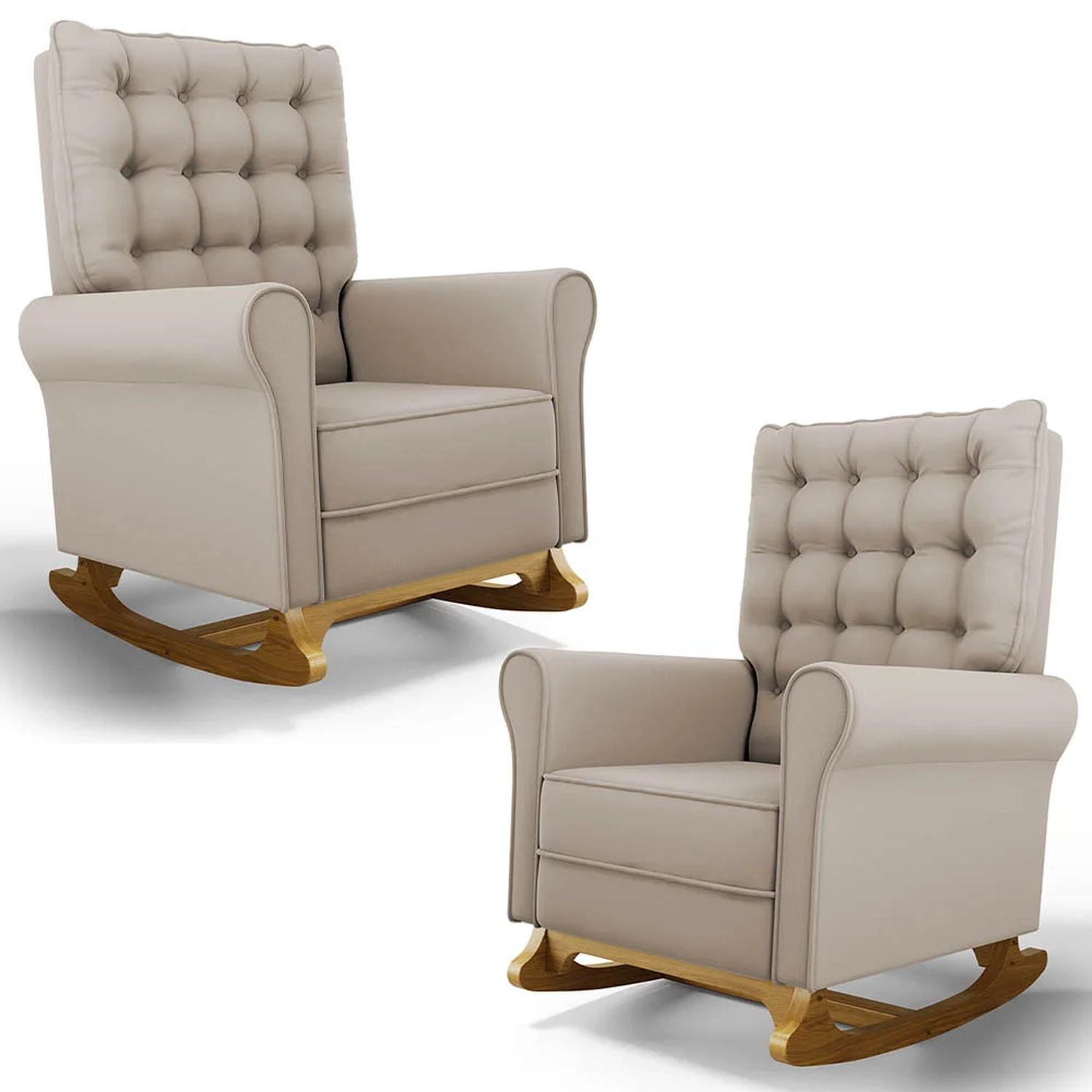 Se está procurando um Kit com conforto, qualidade e sofisticação. Confira o Kit 02 Poltronas de Amamentação e Descanso Base Madeira Balanço Brenda G05 Veludo Bege, da Mpozenato!