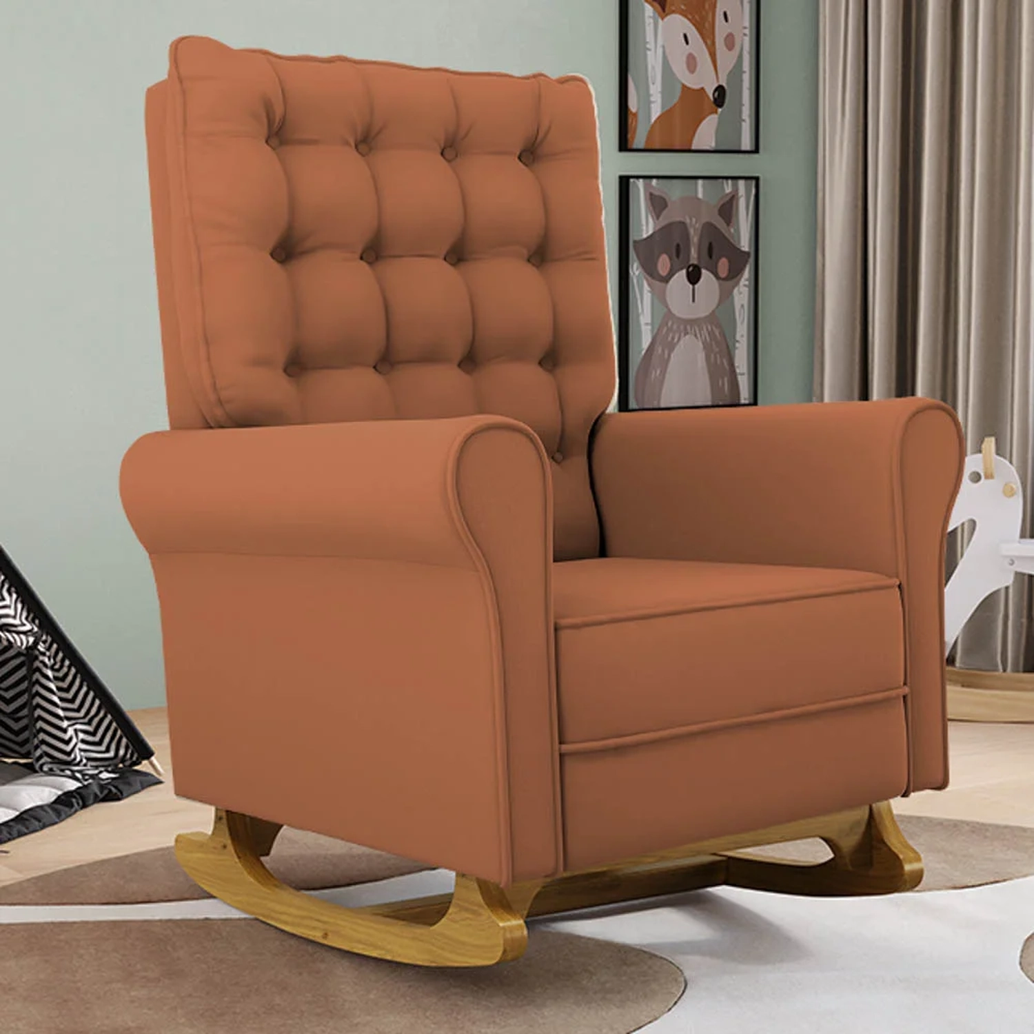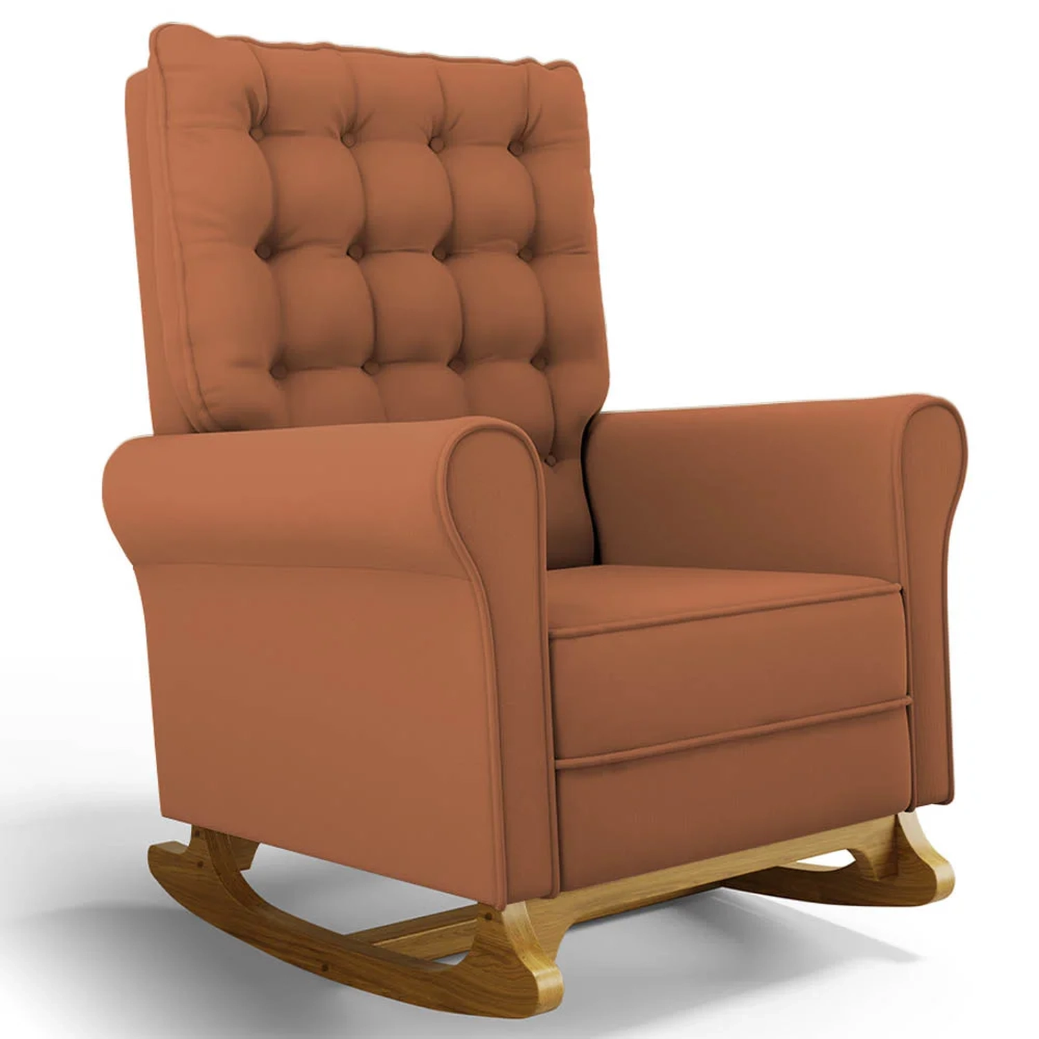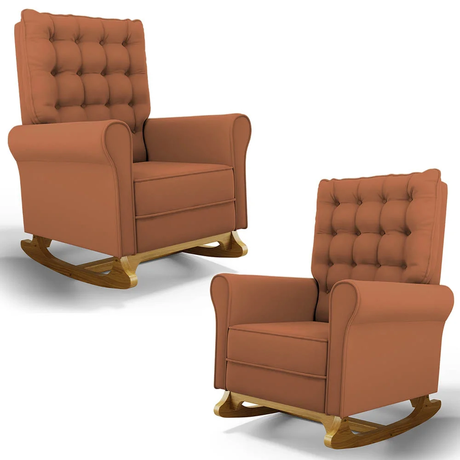 Se está procurando um Kit com conforto, qualidade e sofisticação. Confira o Kit 02 Poltronas de Amamentação e Descanso Base Madeira Balanço Brenda G05 Veludo Terracota, da Mpozenato!