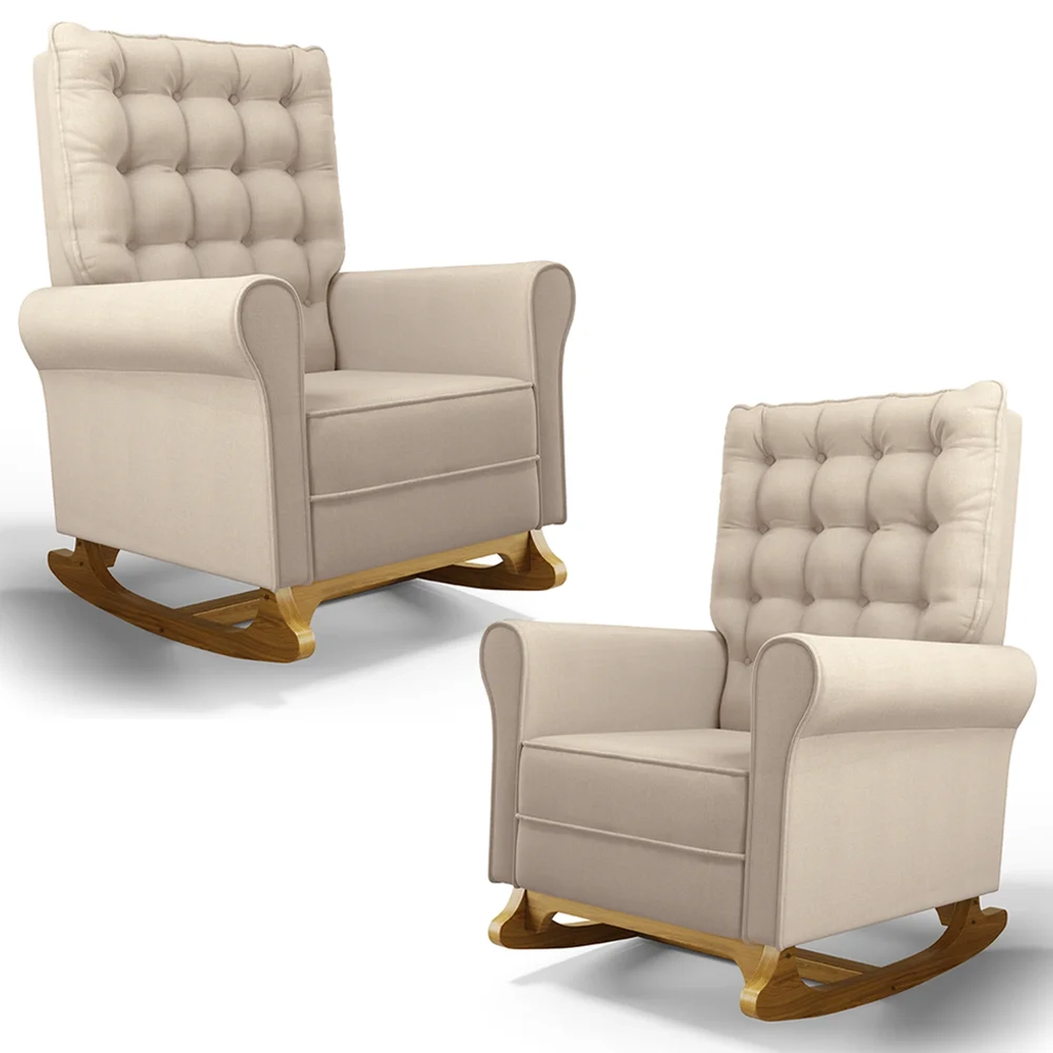 Se está procurando um Kit com conforto, qualidade e sofisticação. Confira o Kit 02 Poltronas de Amamentação e Descanso Base Madeira Balanço Brenda G05 Linho Creme, da Mpozenato!