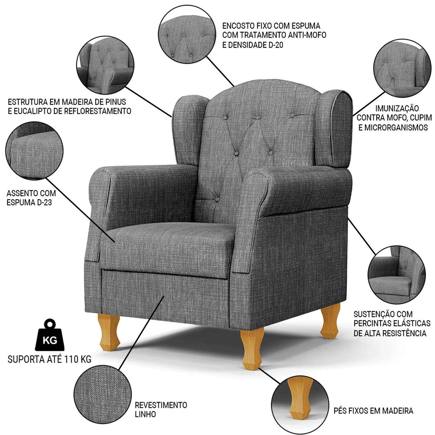 Conteúdo da Embalagem: 2 Poltronas, 8 Pés de Madeira.