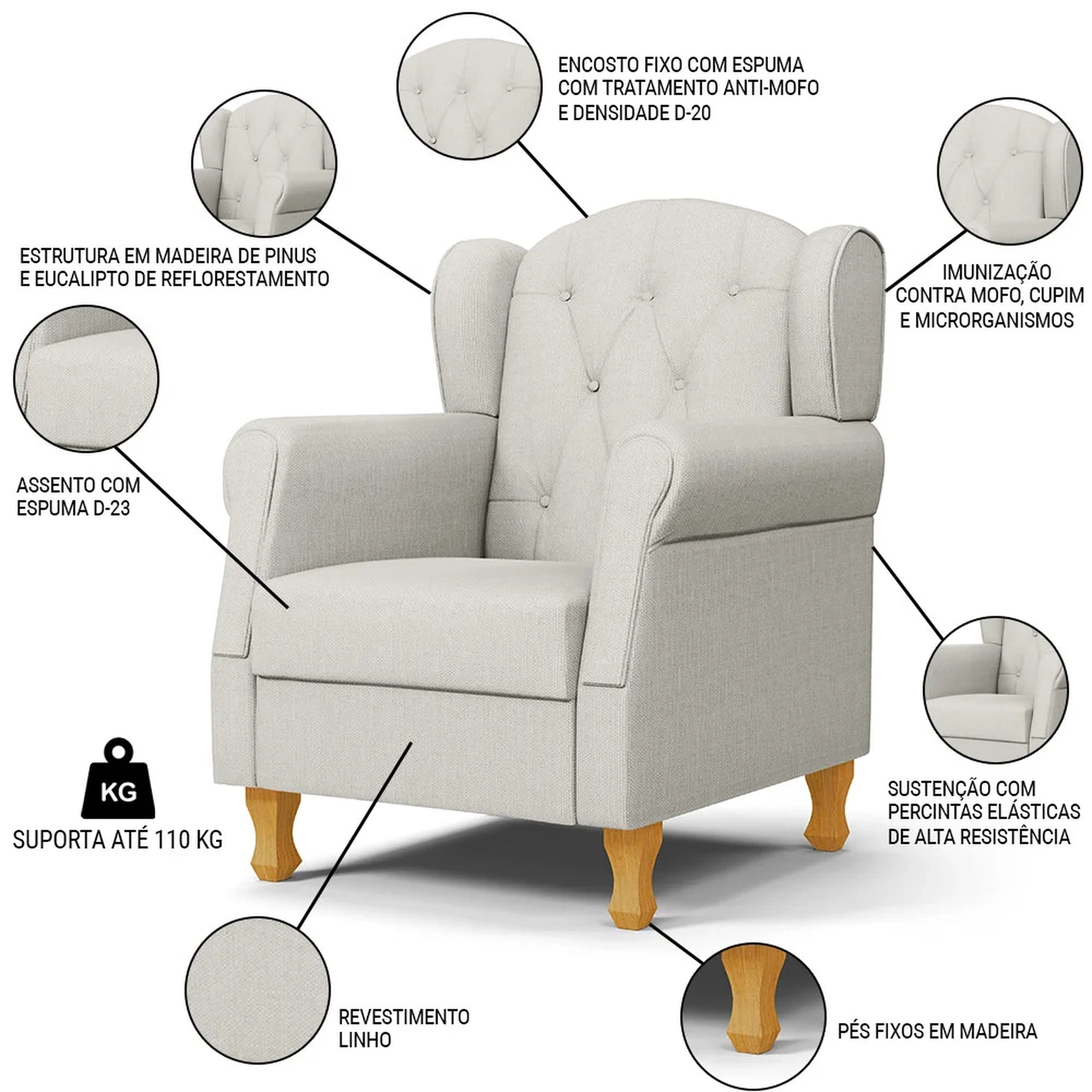 Conteúdo da Embalagem: 2 Poltronas, 8 Pés de Madeira.