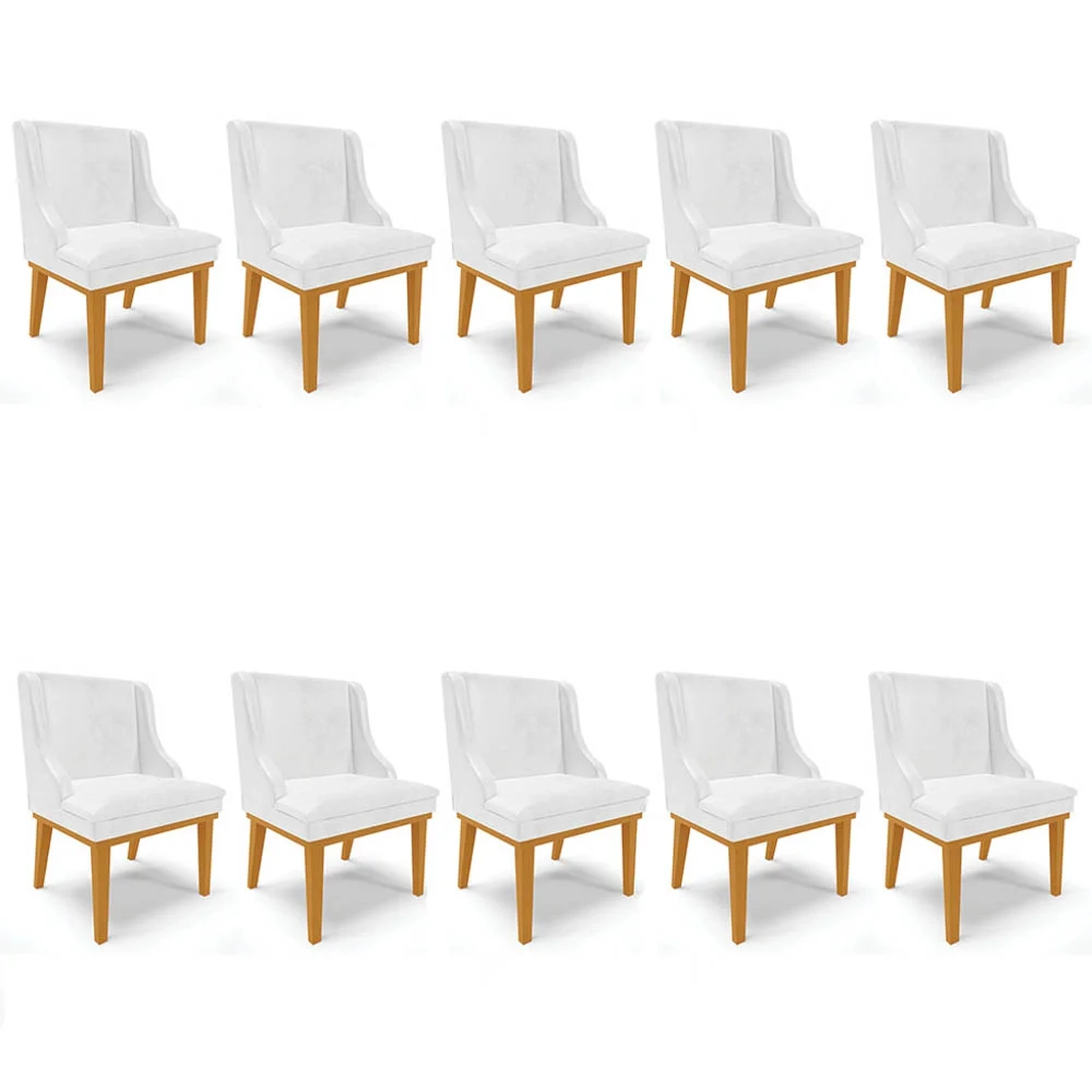 Requinte e sofisticação para sua Sala de Jantar, é exatamente para oferecer esses benefícios que apresentamos o Kit 10 Cadeiras Estofadas Base Fixa de Madeira Castanho Lia Sintético Premium Branco, da Ibiza, confira os detalhes!