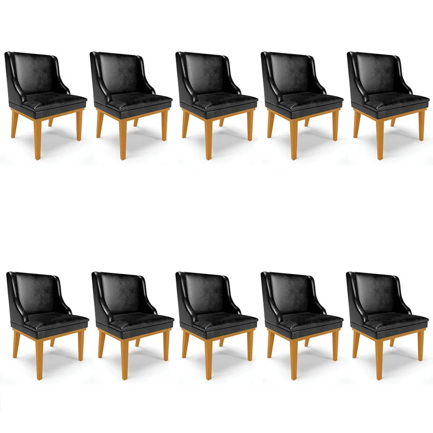 Requinte e sofisticação para sua Sala de Jantar, é exatamente para oferecer esses benefícios que apresentamos o Kit 10 Cadeiras Estofadas Base Fixa de Madeira Castanho Lia Sintético Premium Preto, da Ibiza, confira os detalhes!