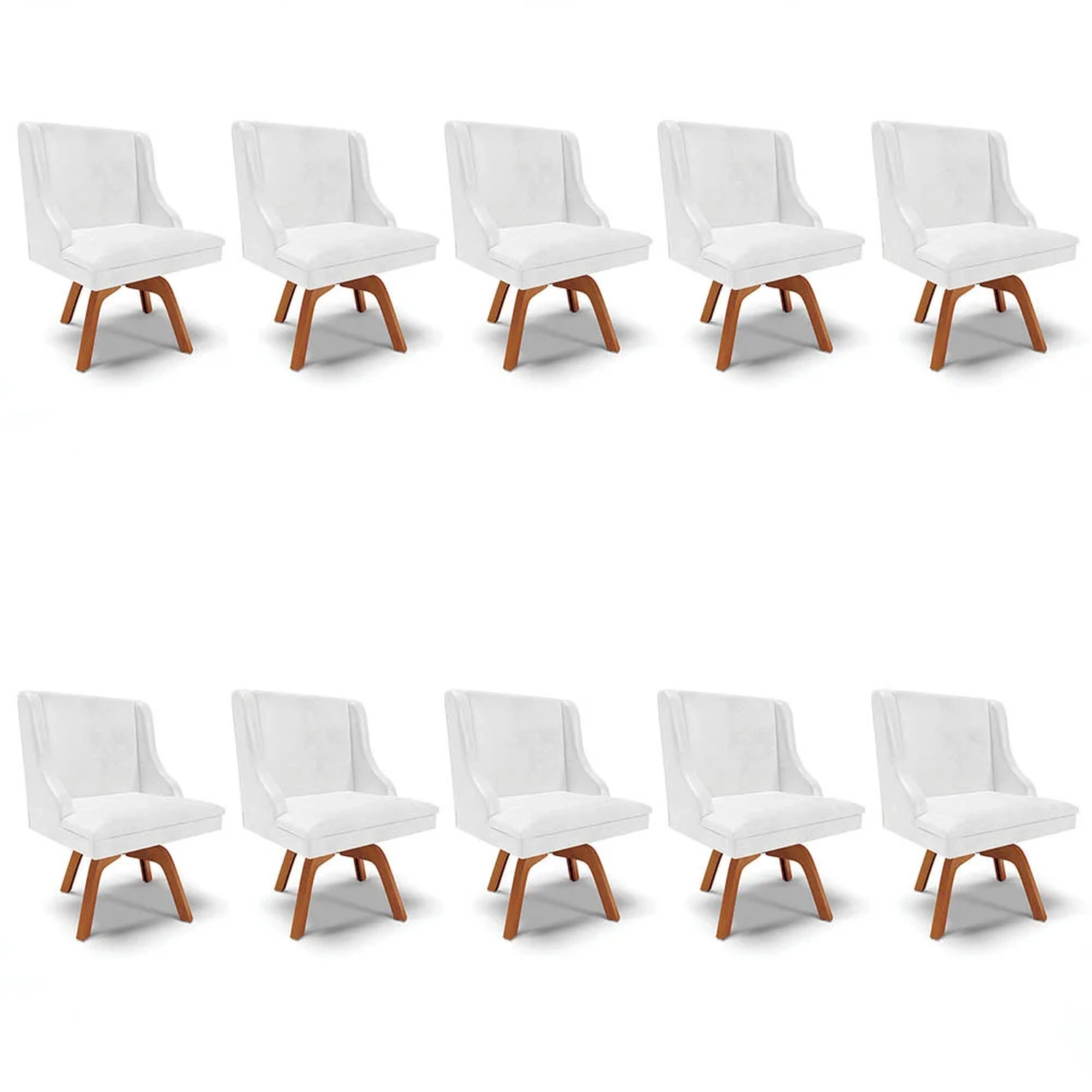 Quer dar um toque de sofisticação na sua casa sem abrir mão da qualidade? Vem conhecer o Kit 10 Cadeiras Estofadas Base Giratória de Madeira Lia Sintético Premium Branco, da Ibiza e surpreenda-se!