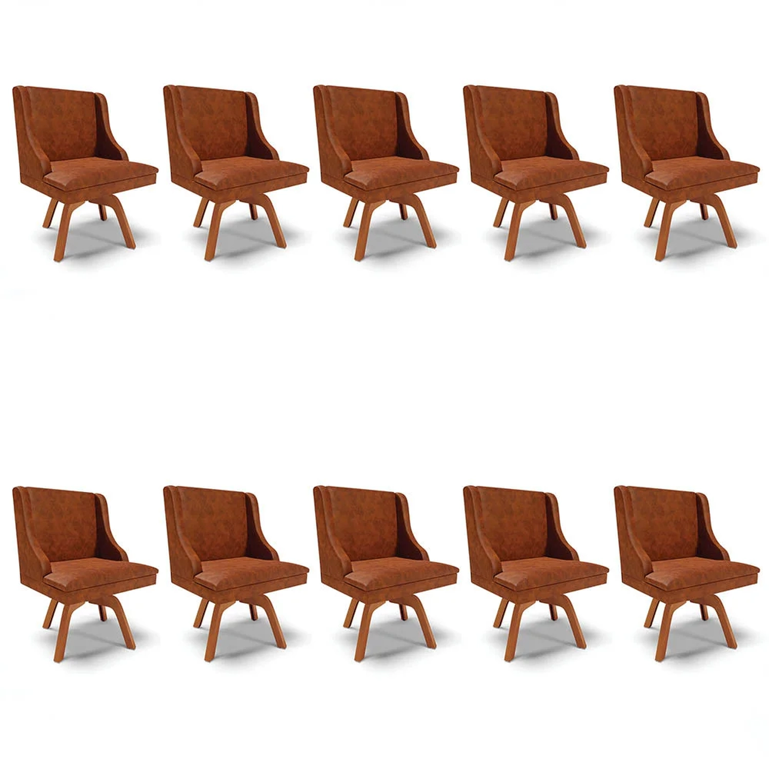 Quer dar um toque de sofisticação na sua casa sem abrir mão da qualidade? Vem conhecer o Kit 10 Cadeiras Estofadas Base Giratória de Madeira Lia Sintético Premium Nozes, da Ibiza e surpreenda-se!