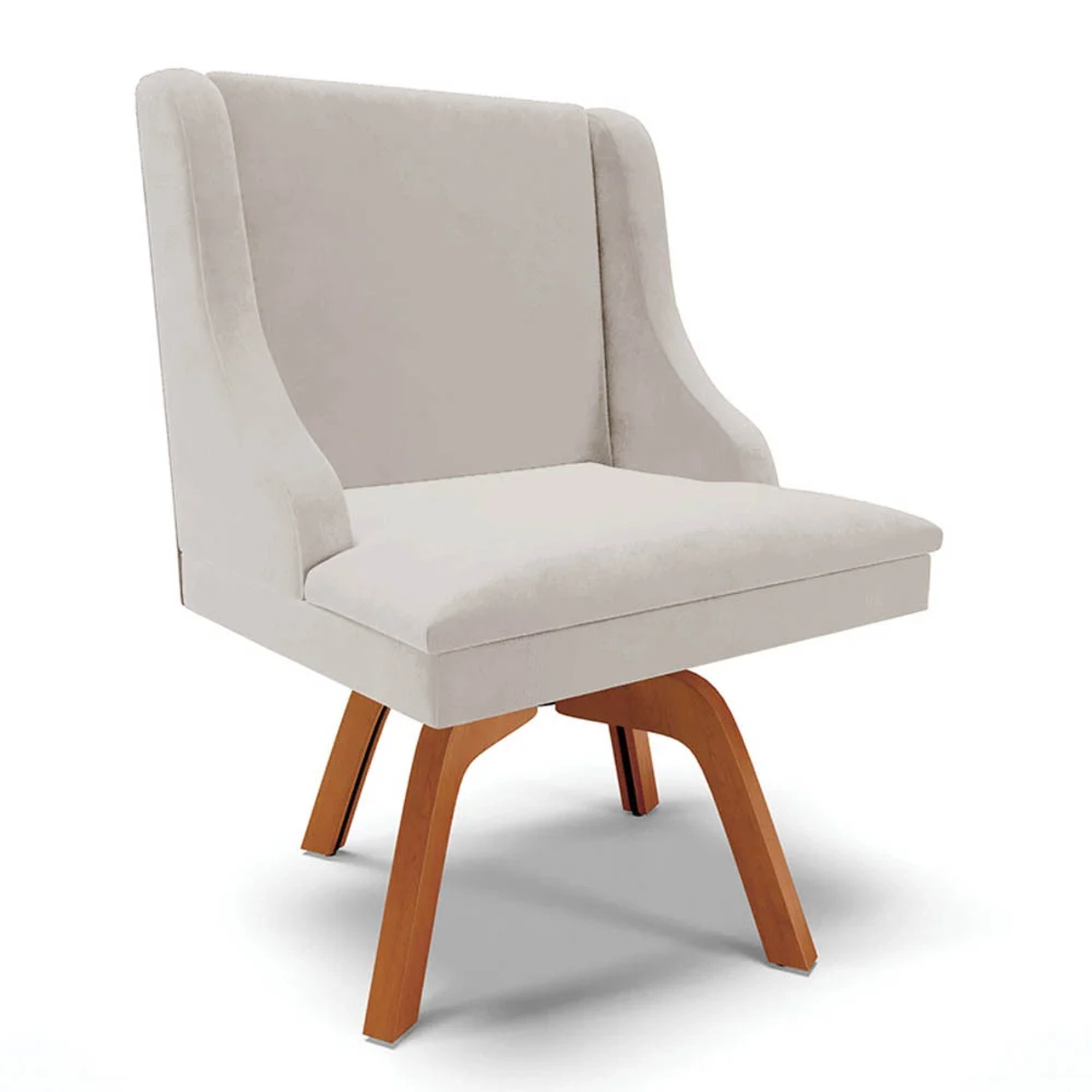 A Cadeira Estofada Lia possui design elegante e é ideal para quem busca aconchego e sofisticação na hora das refeições. A Base Giratória de Madeira é resistente e permite que se movimente com facilidade e ainda suporta até 120kg! Além disso, a Cadeira Estofada é produzida com Madeira Eucalipto de reflorestamento, ecologicamente correta e o estofado é composto em espuma macia D-23 e revestido em Veludo, tecido clássico, elegante, macio, agradável ao toque, além de resistente e durável é versátil e combina com vários estilos de decoração!