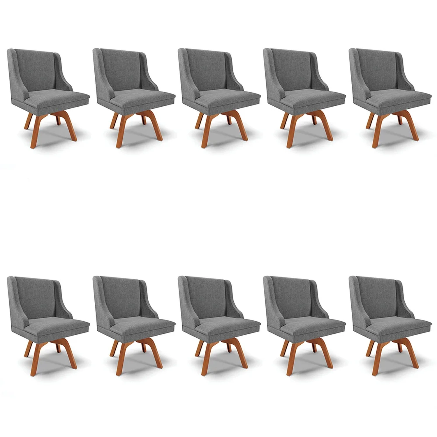 Para você que tem bom gosto, conheça o Kit 10 Cadeiras Estofadas Giratória para Sala de Jantar Lia Linho Grafite, da Ibiza e leve elegância e conforto para sua casa! Vem conhecer os detalhes!