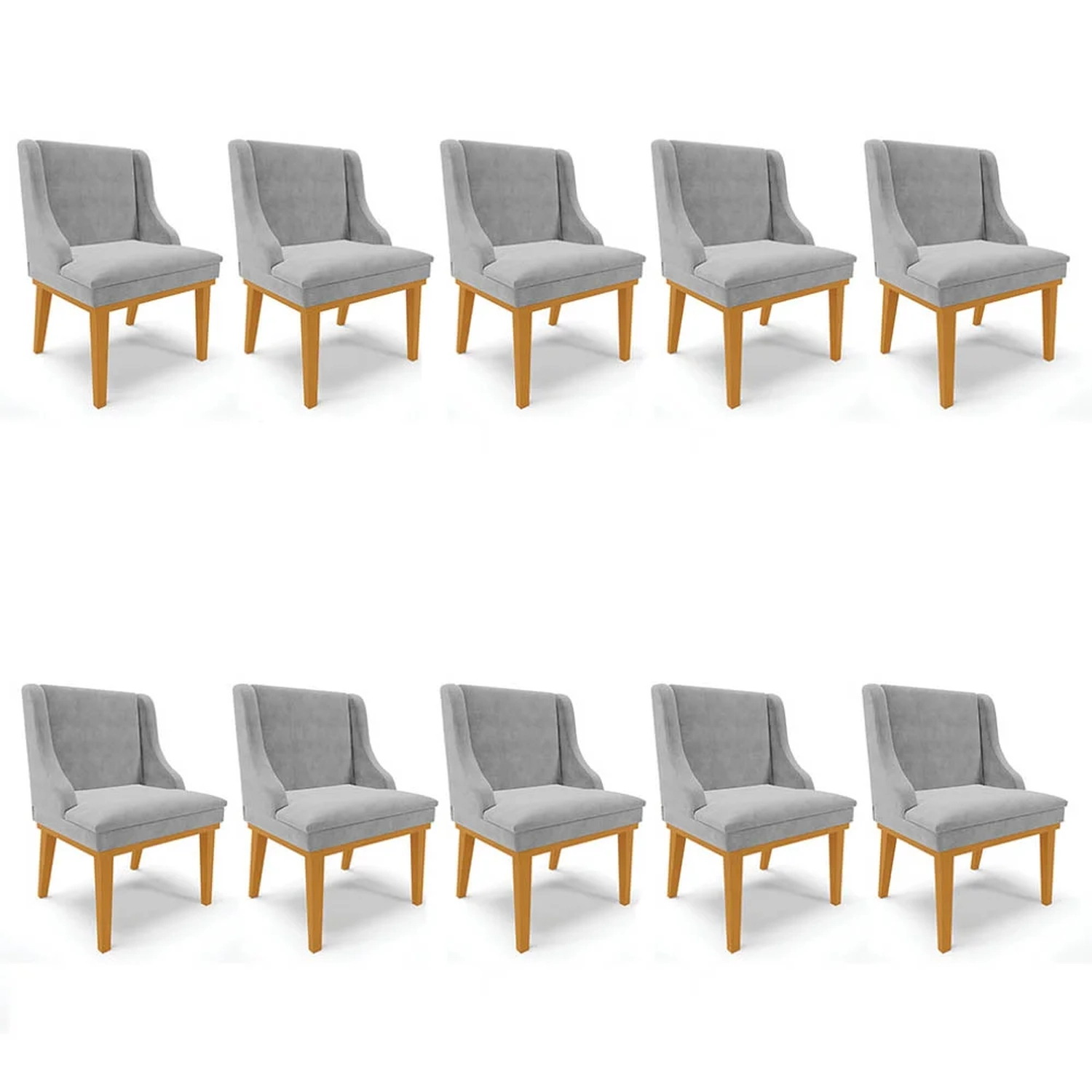 Para quem procura conforto, qualidade e elegância, o Kit 10 Cadeiras Estofadas para Sala de Jantar Base Fixa de Madeira Castanho Lia Suede Cinza, da Ibiza, é a escolha certeira!