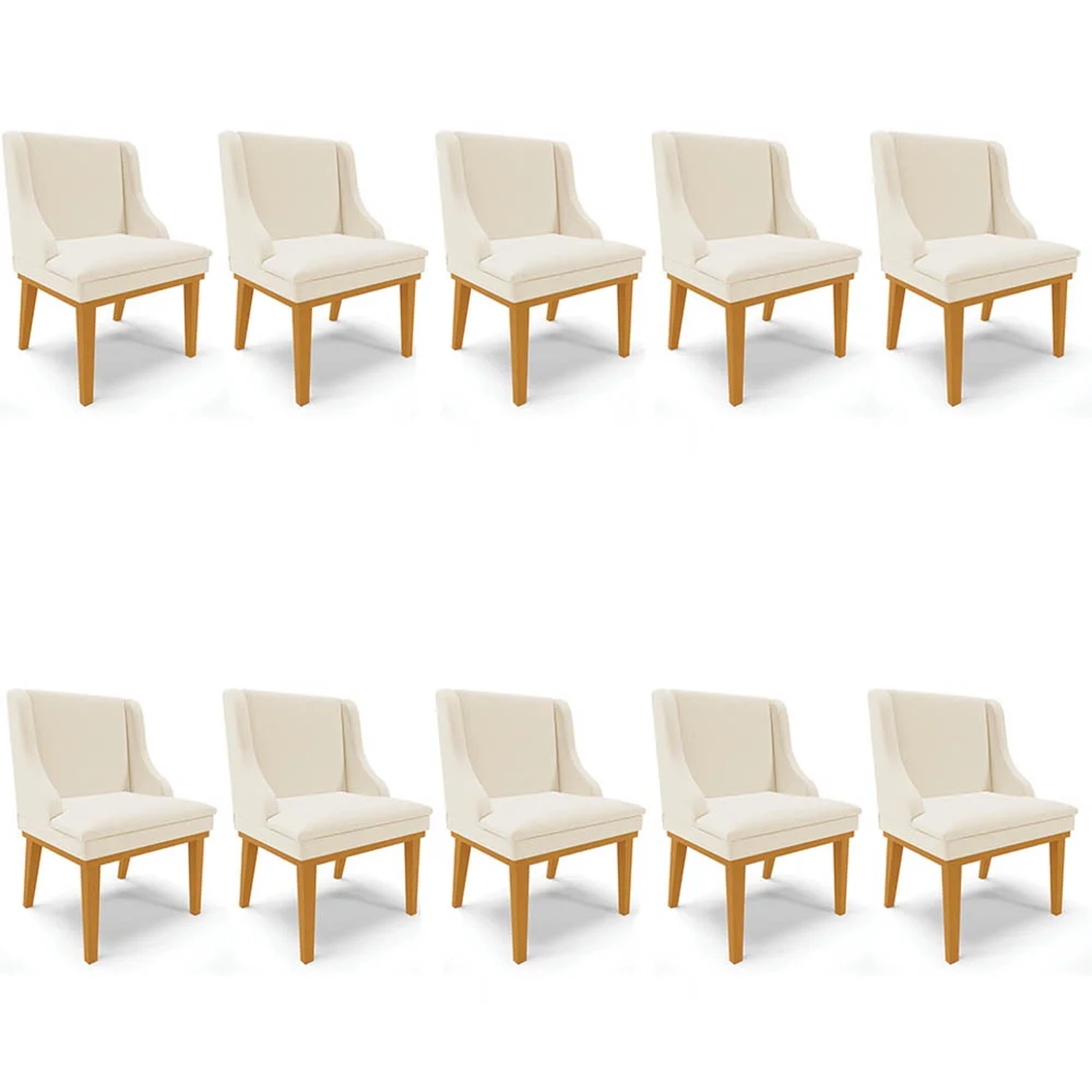 Que tal, unir conforto e beleza e deixar a sua casa mais bonita? Vem conhecer o Kit 10 Cadeiras Estofadas para Sala de Jantar Base Fixa de Madeira Castanho Lia Linho Bege, que a Ibiza preparou especialmente para você!